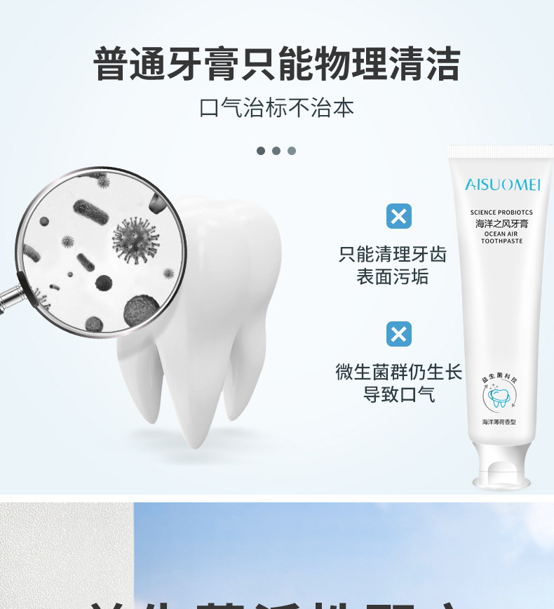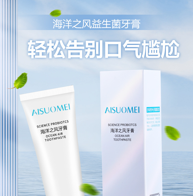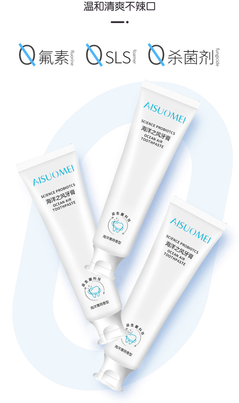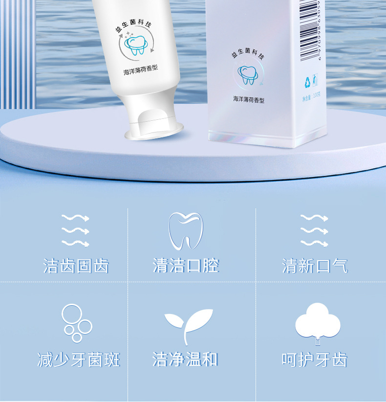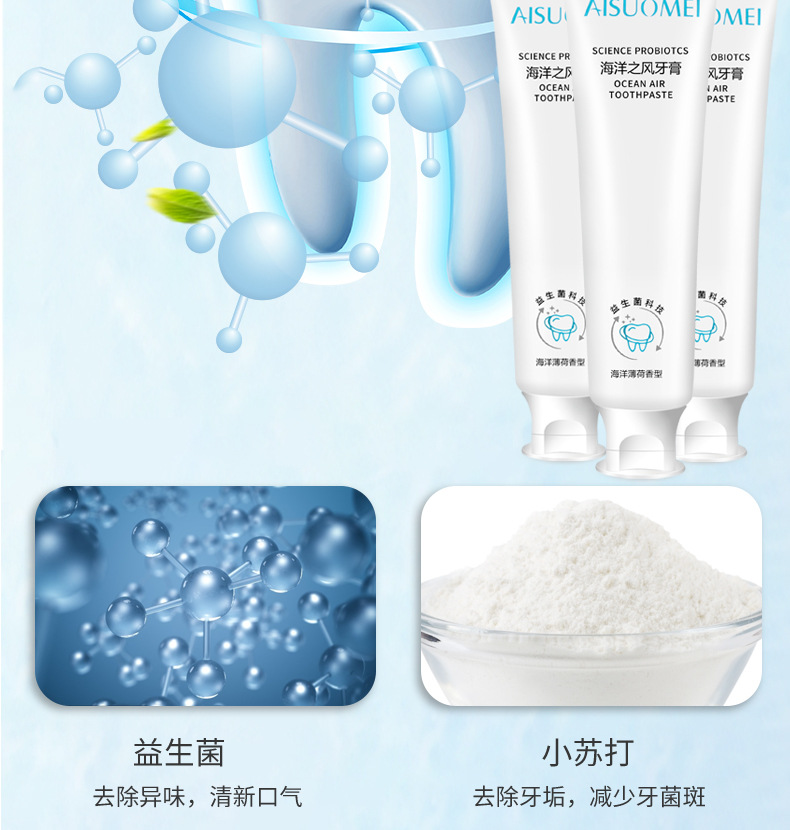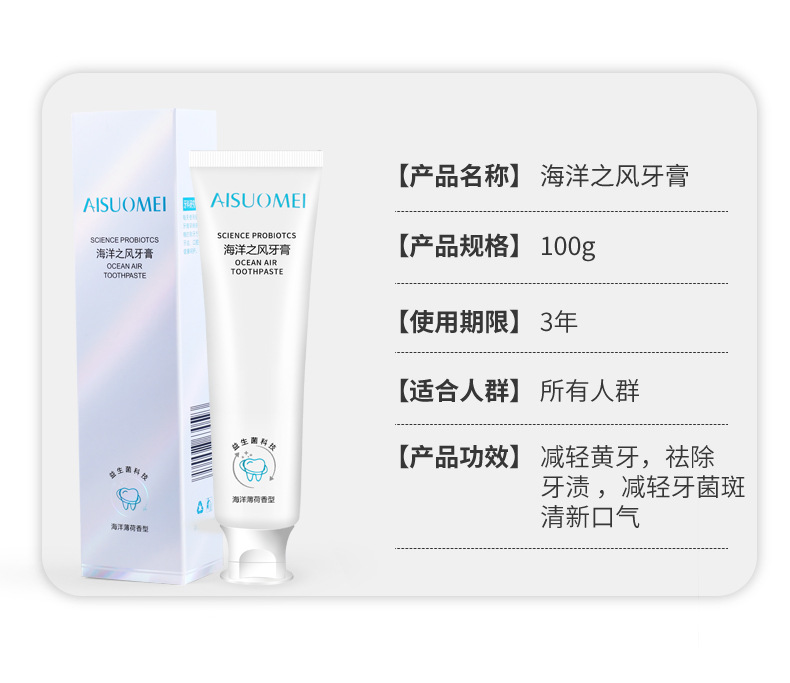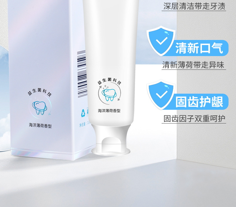 「买二送一 清新口气」海洋之风益生菌牙膏 口腔护理 牙齿亮白 去黄去渍 薄荷味牙膏100g/支