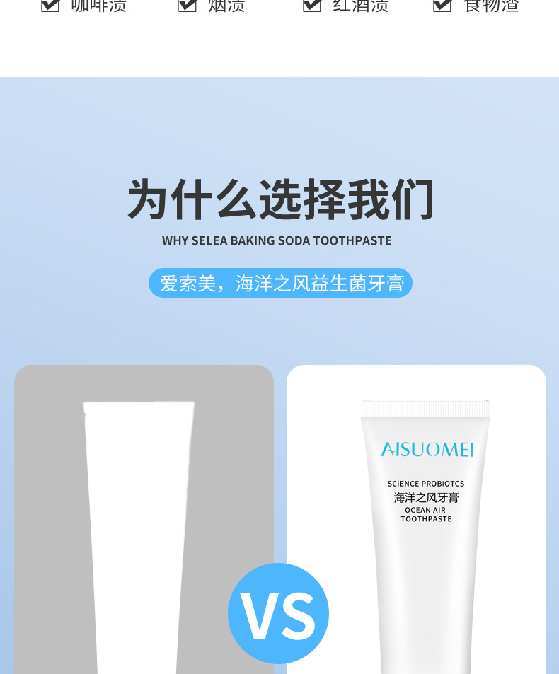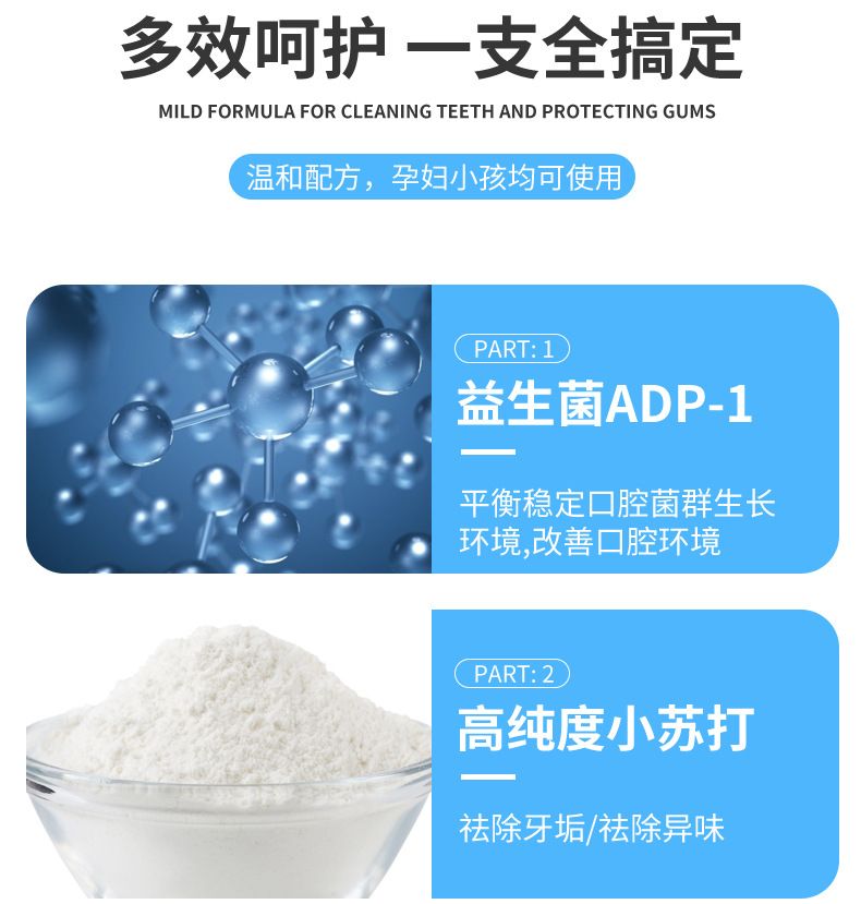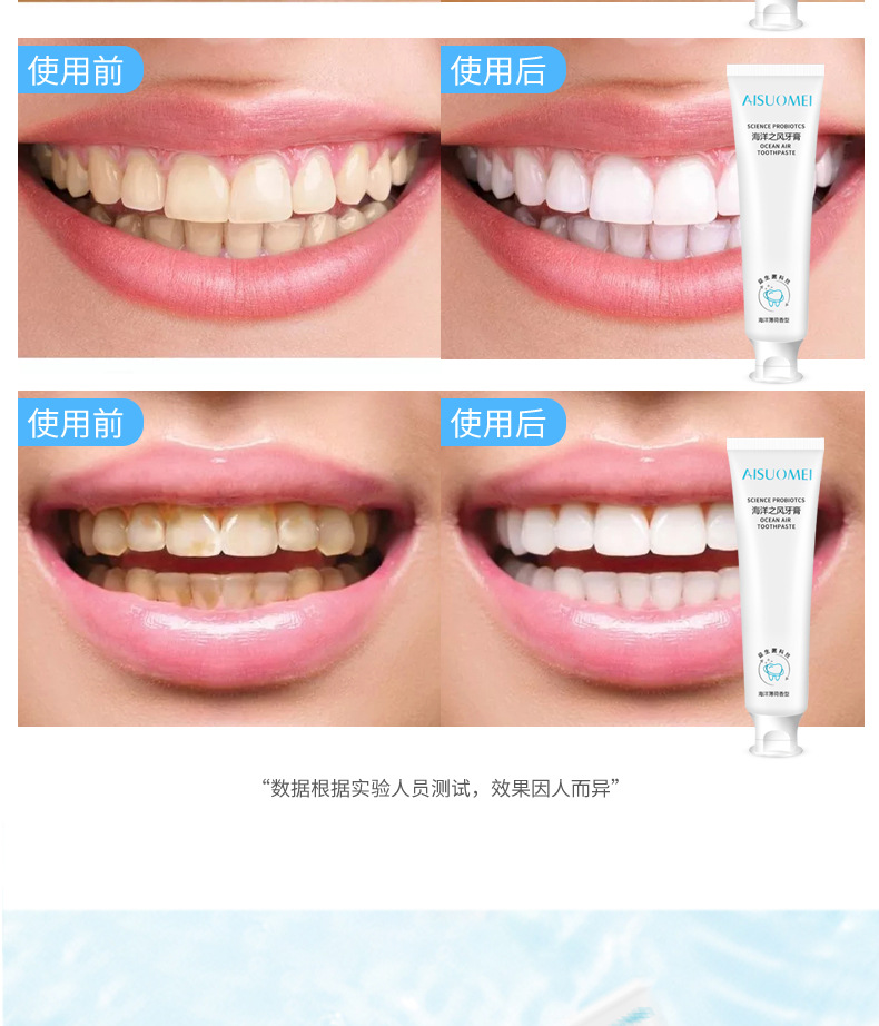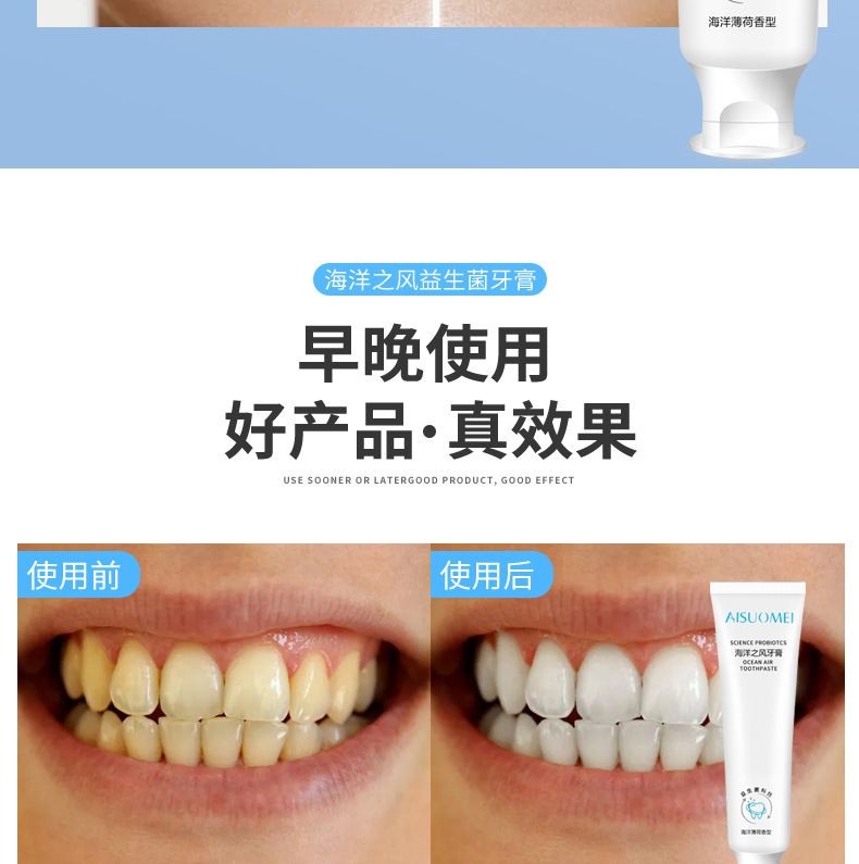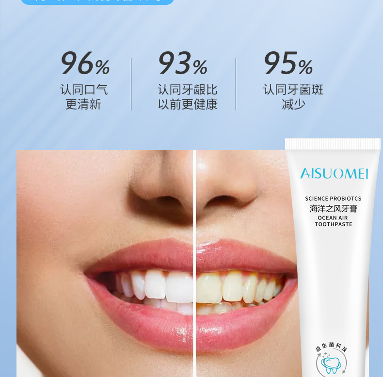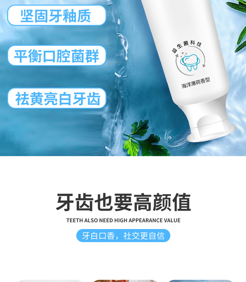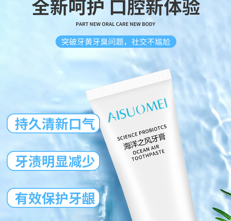 「买二送一 清新口气」海洋之风益生菌牙膏 口腔护理 牙齿亮白 去黄去渍 薄荷味牙膏100g/支