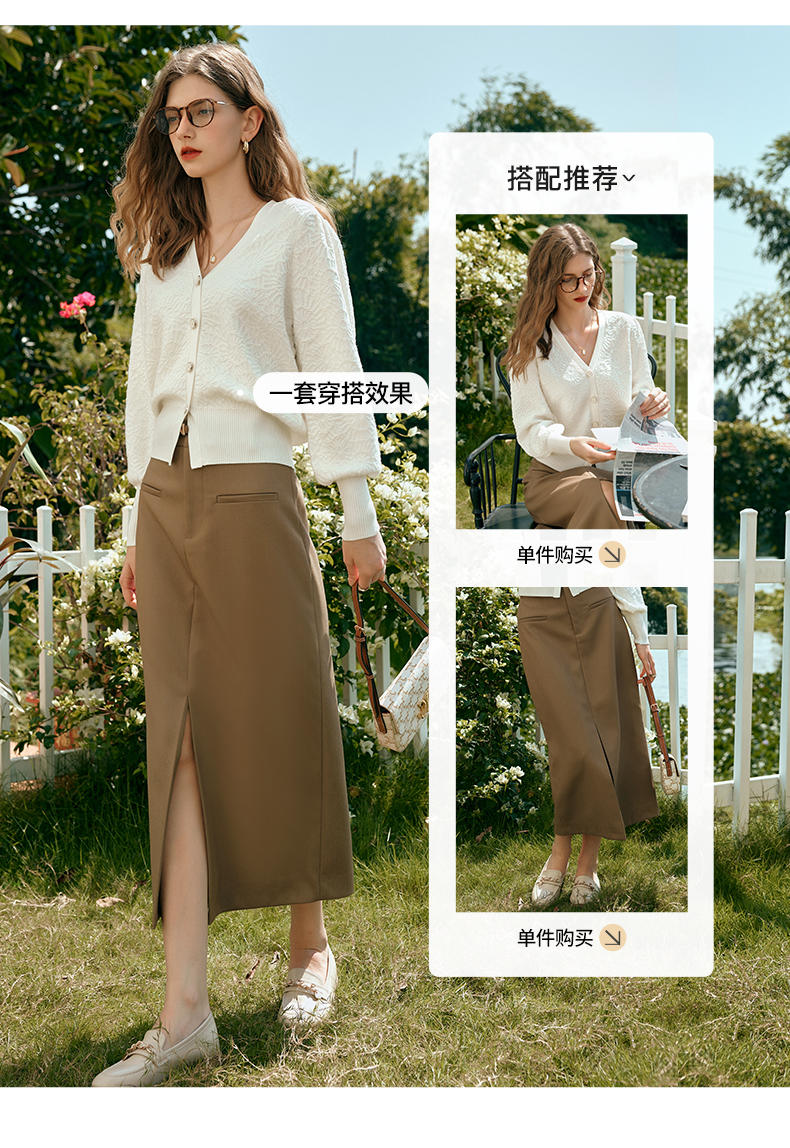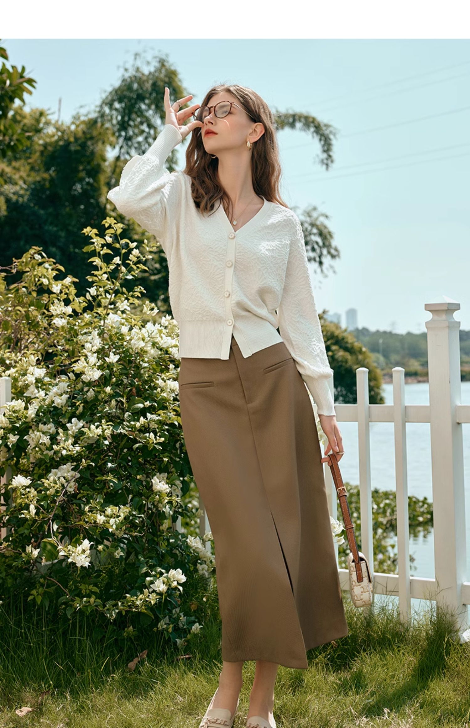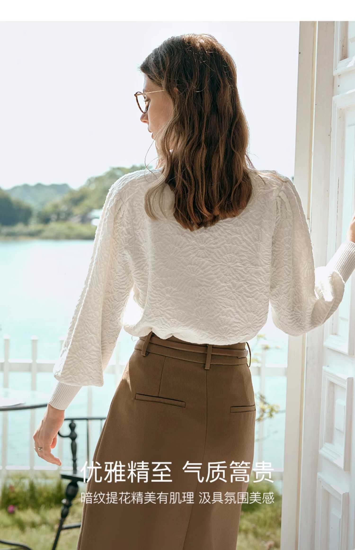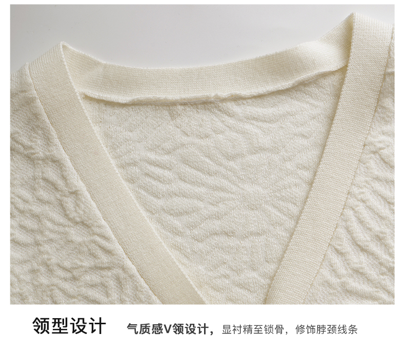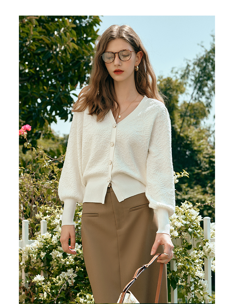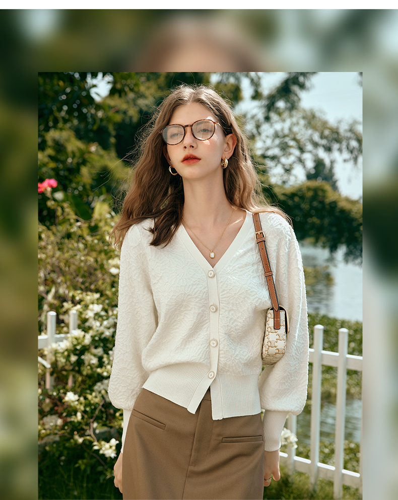 OLrain欧芮儿杏白色针织衫女早春2024年新款优雅暗纹提花开衫毛衣