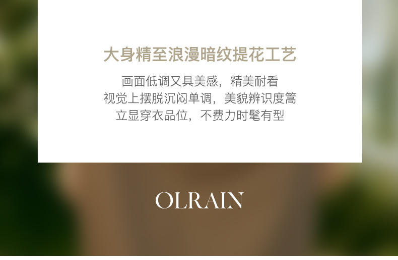 - “精致”是欧芮儿olrain品牌文化的核心,欧芮儿认为,精致的女人,不但要外在动人,更要内在迷人,内外兼修,有魅力、有气质、有内涵,自信而不自傲,优雅而不矫揉,自有万种风情而不轻浮,更不故作矜持。