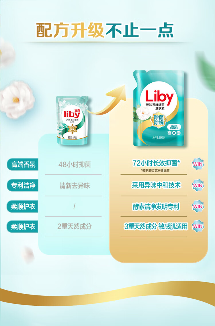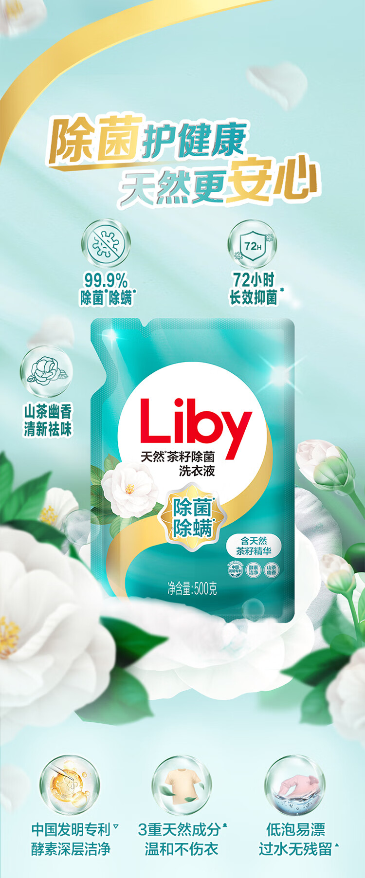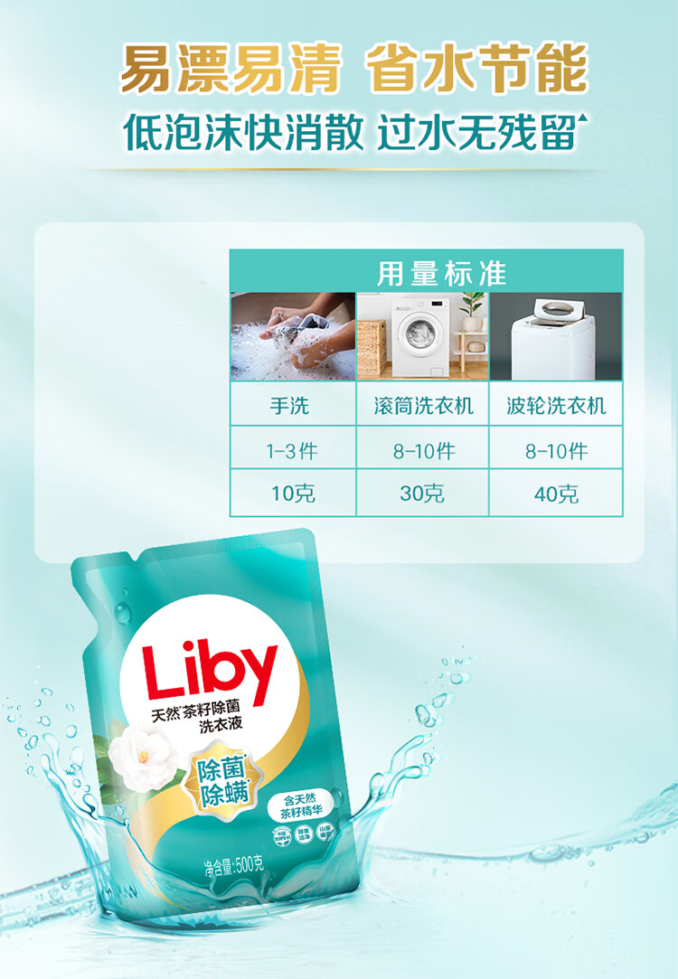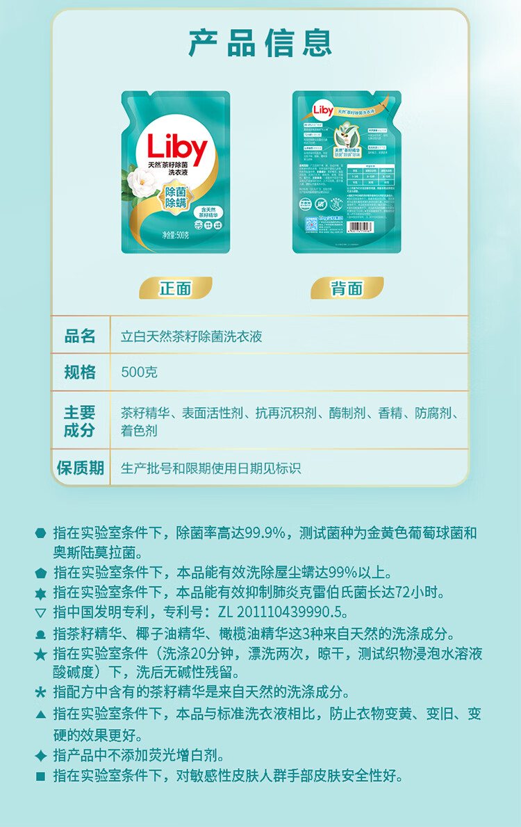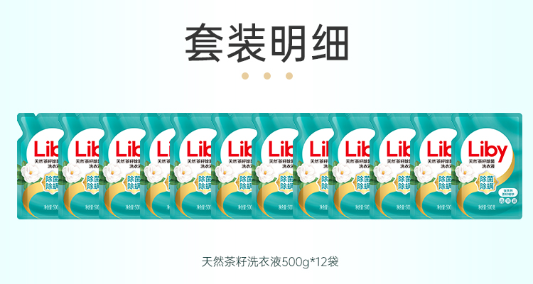 立白天然茶籽除菌洗衣液6kg(500g*12袋)补充装 香水洗衣液香味持久 手洗机洗 酒店整箱批发团购