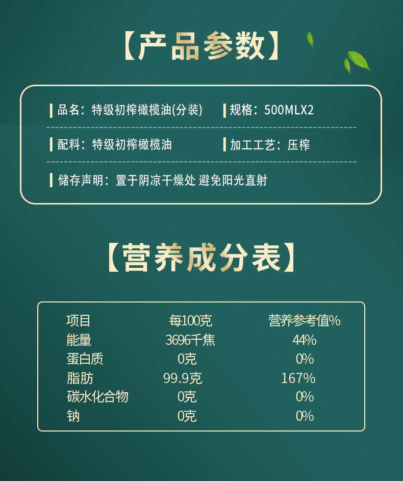 特级-橄榄油500毫升*2玻璃瓶-礼盒装