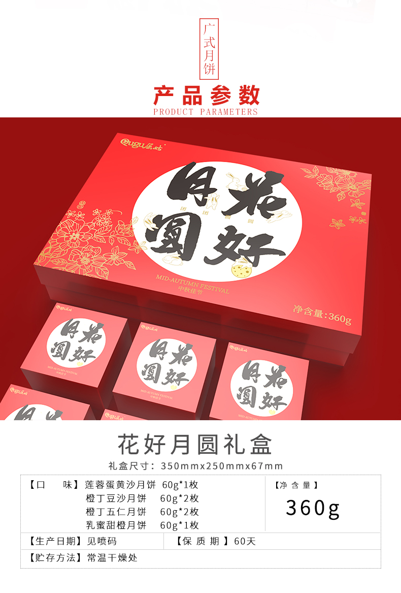 【严选】屈姑广月经典系列花好月圆月饼礼盒360g/盒 (厂家直发)