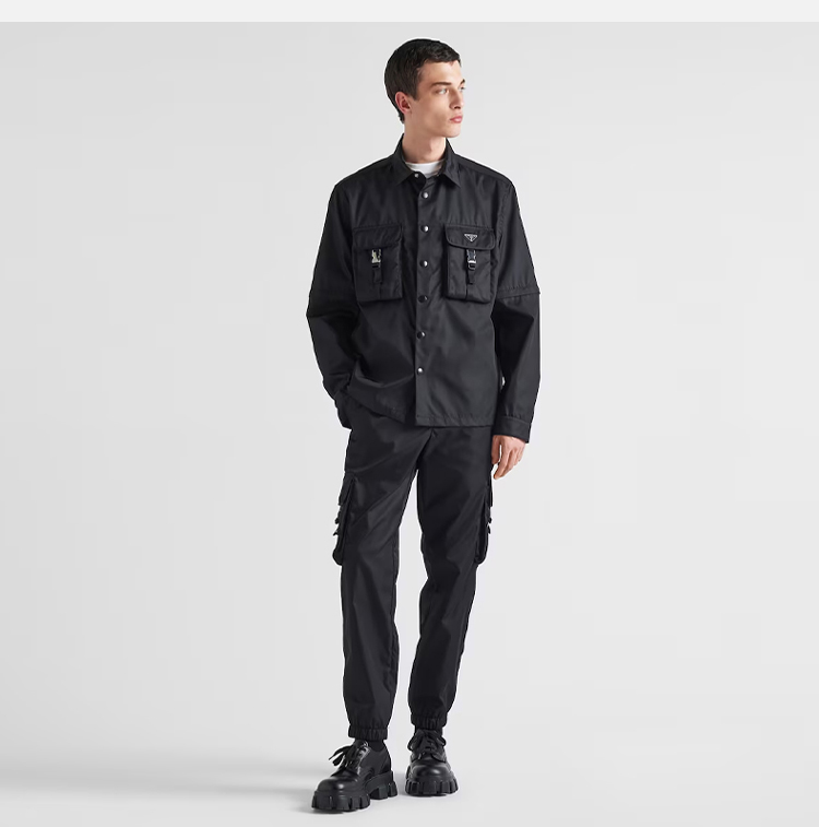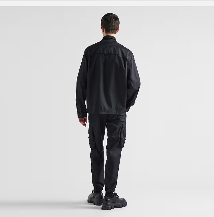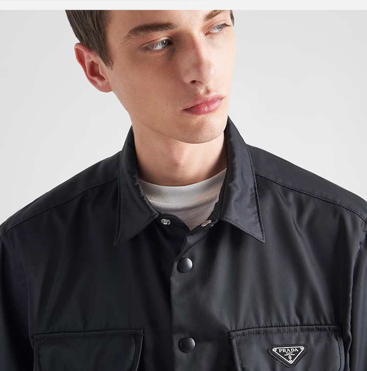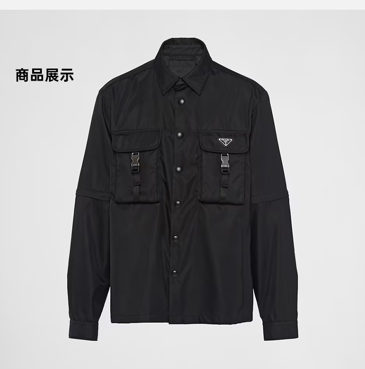 PRADA 普拉达 男士 Re-Nylon 再生尼龙珐琅金属三角形徽标长袖衬衫 黑色 SC548 1WQ8 F0002