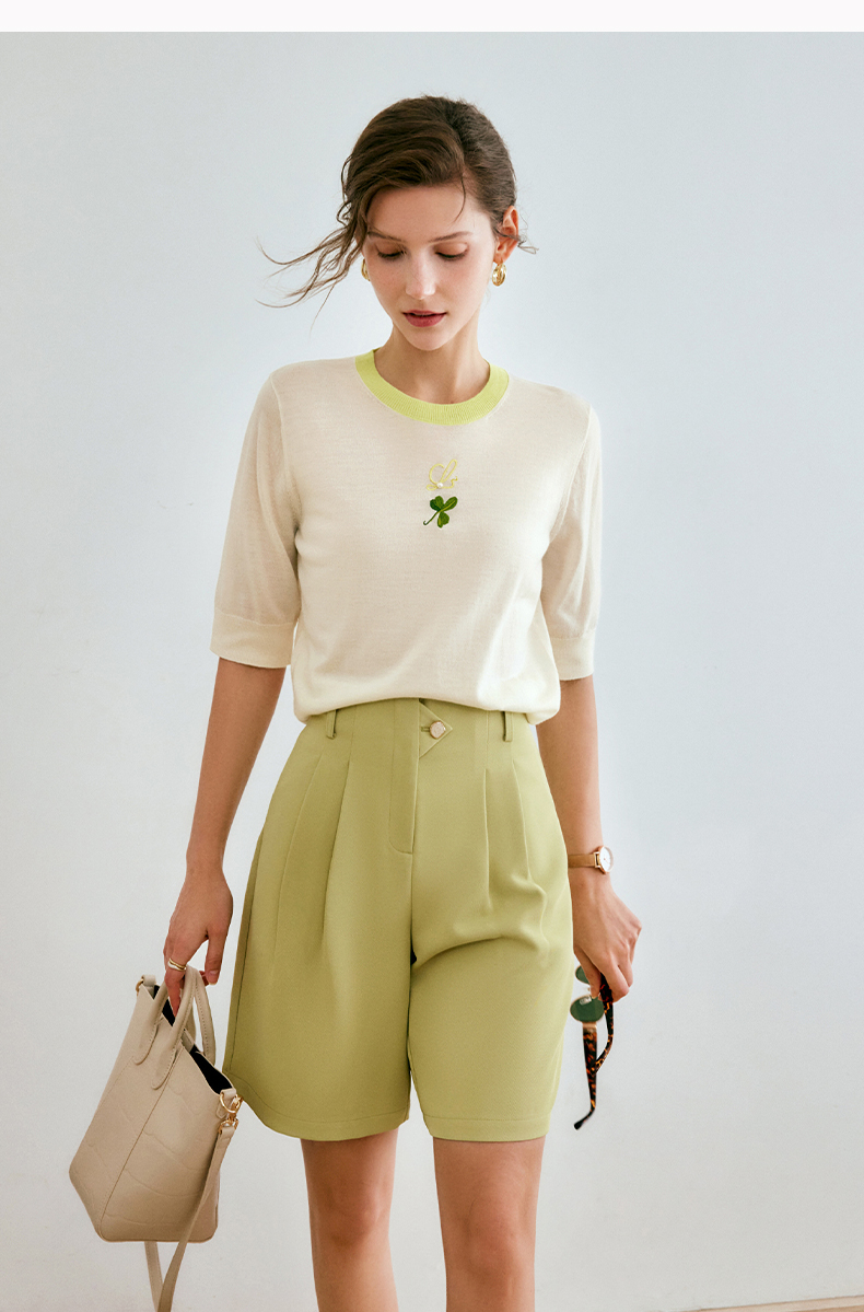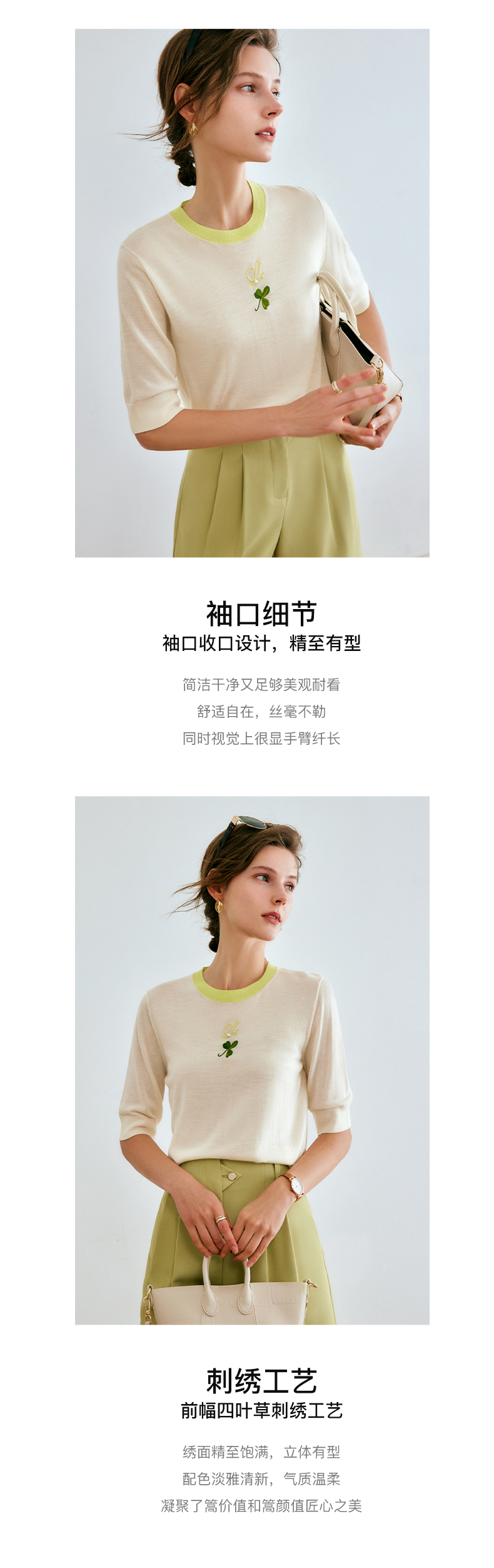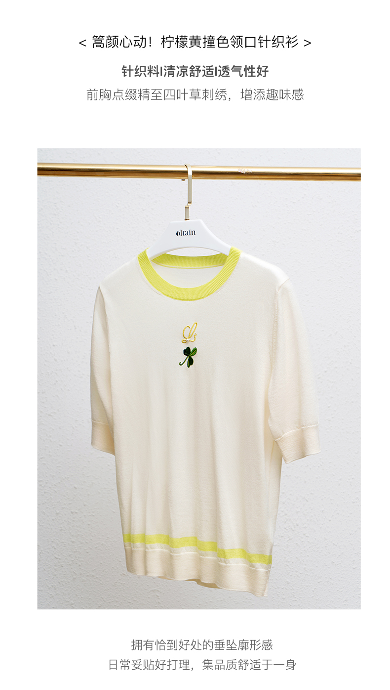 欧芮儿套头针织衫女夏季2022新款复古减龄撞色五分袖冰丝薄款上衣