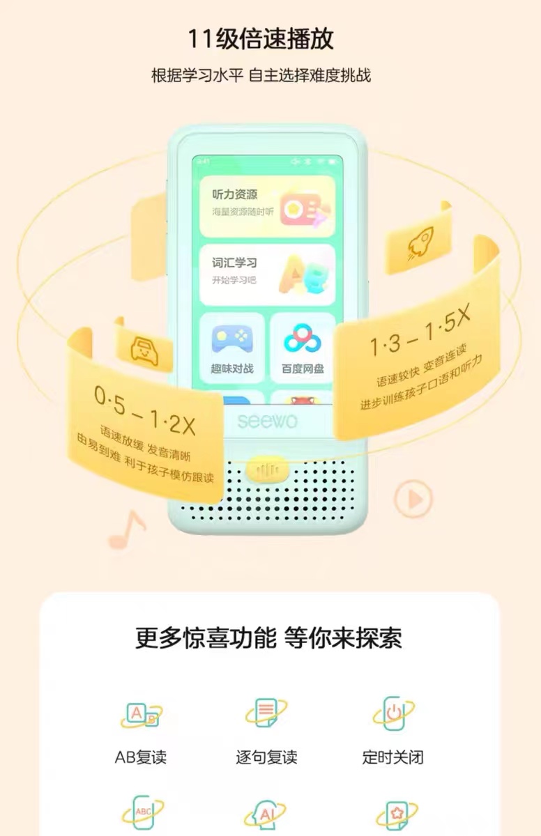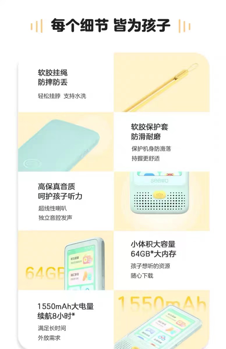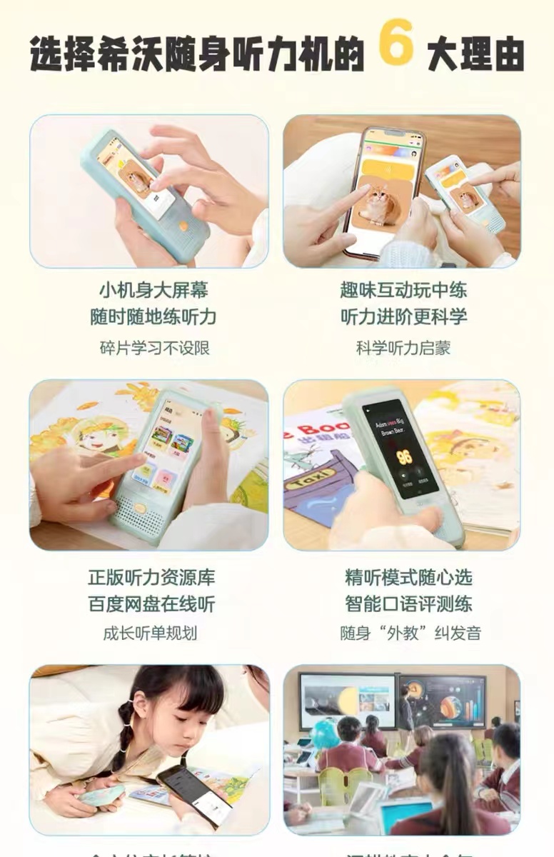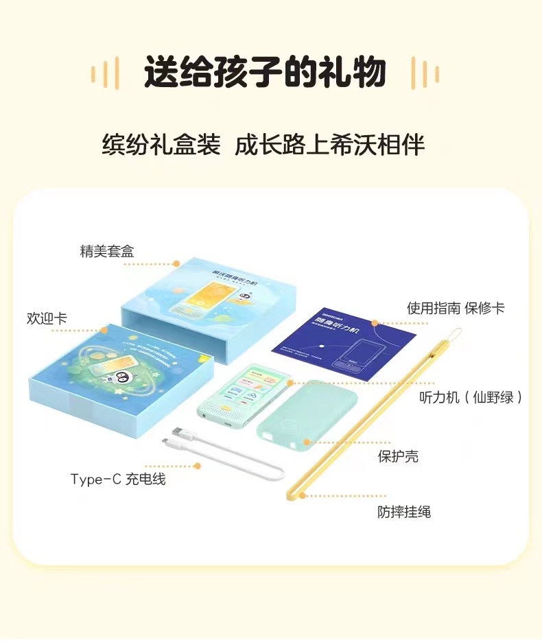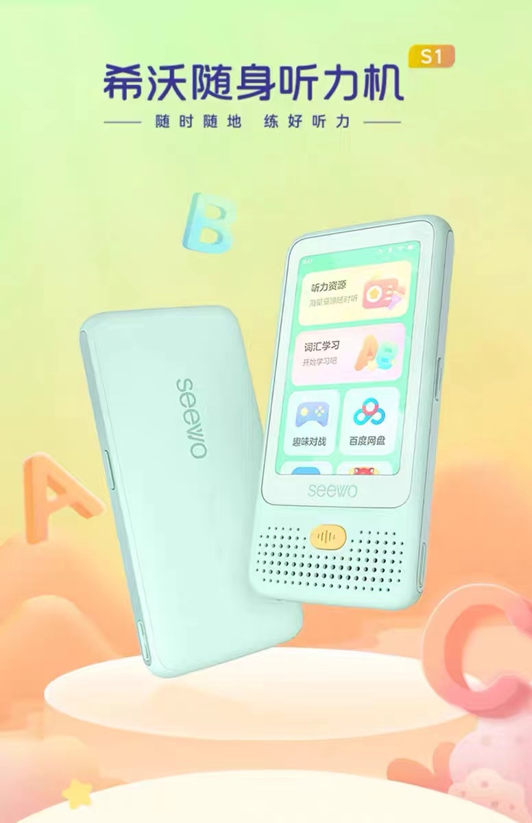 希沃随身听力机 s1 | 英语早教机 | 儿童英语启蒙随身听学习机 | 3.1寸防眩屏 | 手持挂脖两用 | 98g超轻机身 | 无游戏 | 适合学龄前~初中