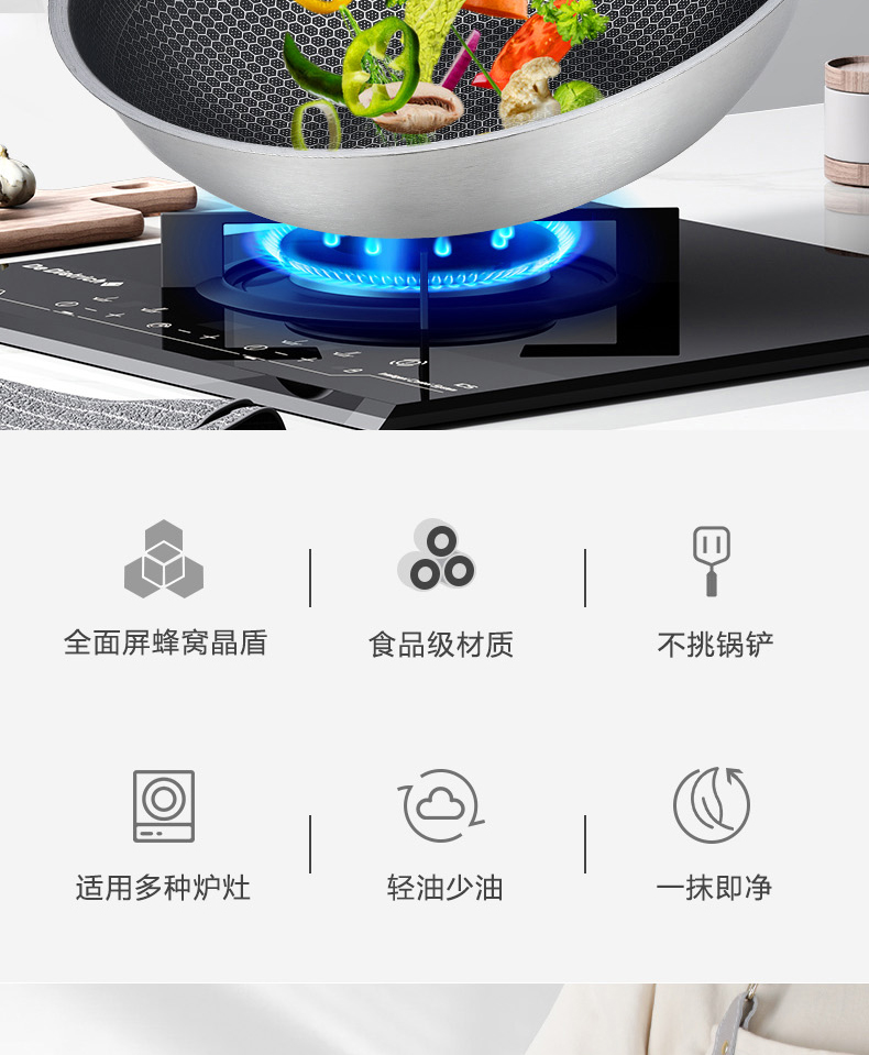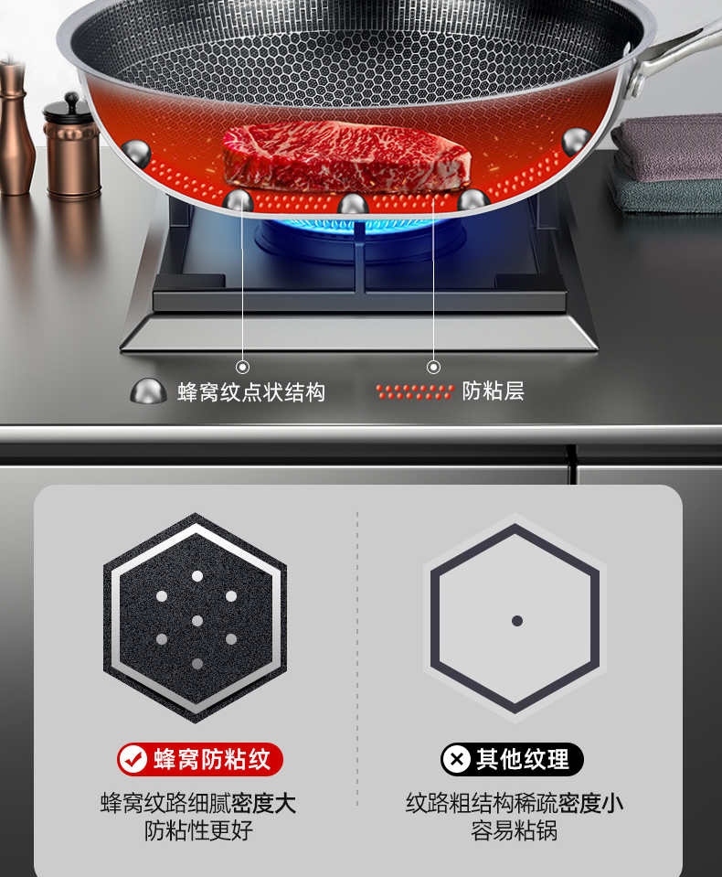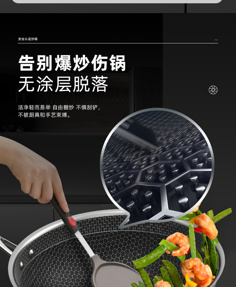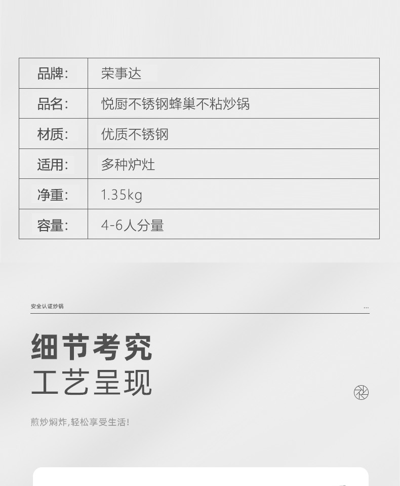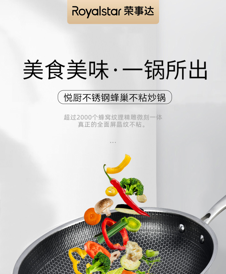 荣事达 悦厨不锈钢蜂巢不粘炒锅(30cm)RSD-CG01