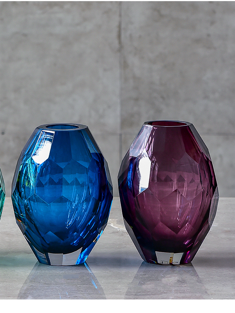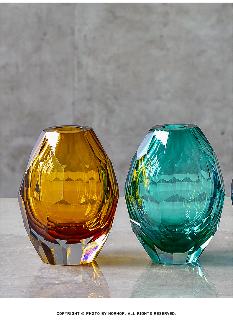 碧轩美式玻璃花瓶摆件 现代简约时尚客厅插花花器 样板间家居软装饰品