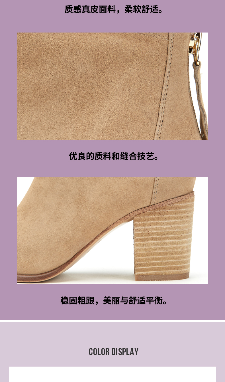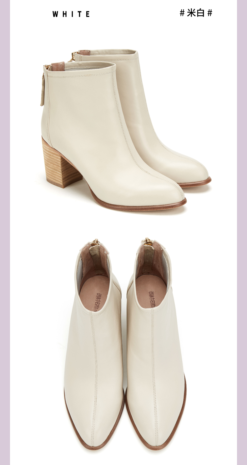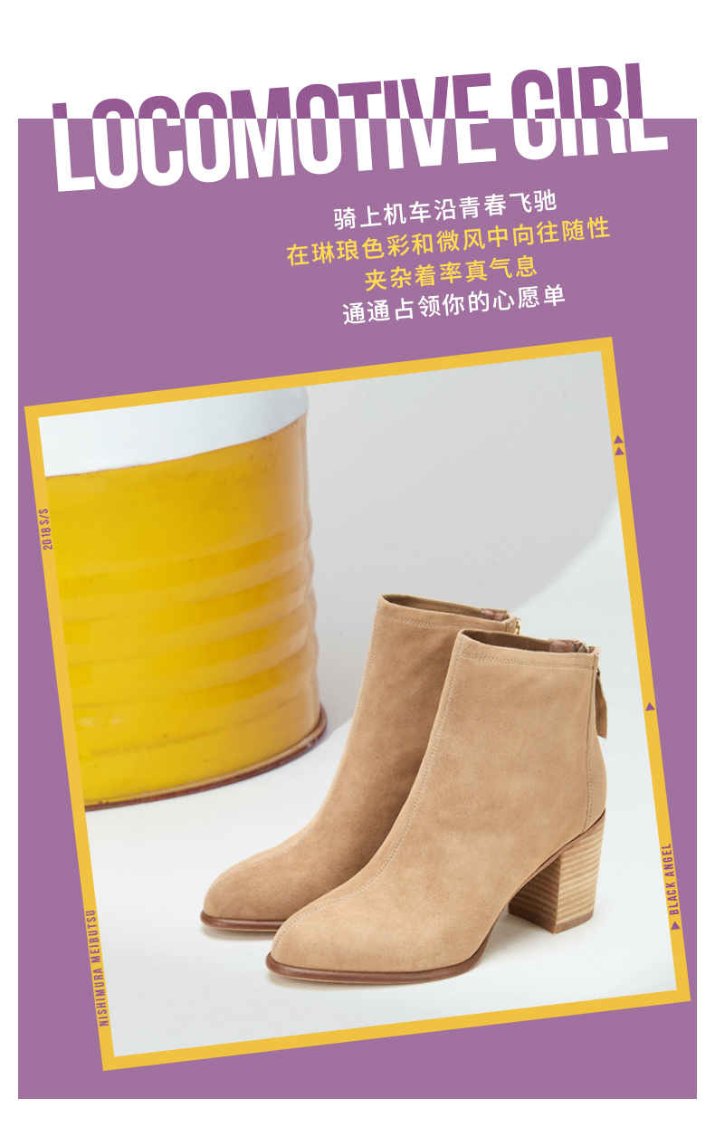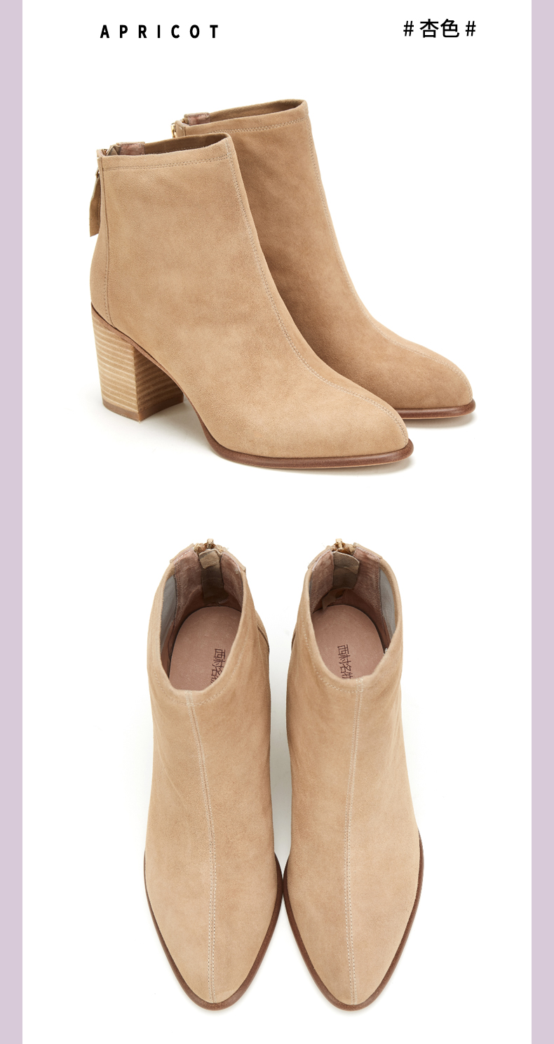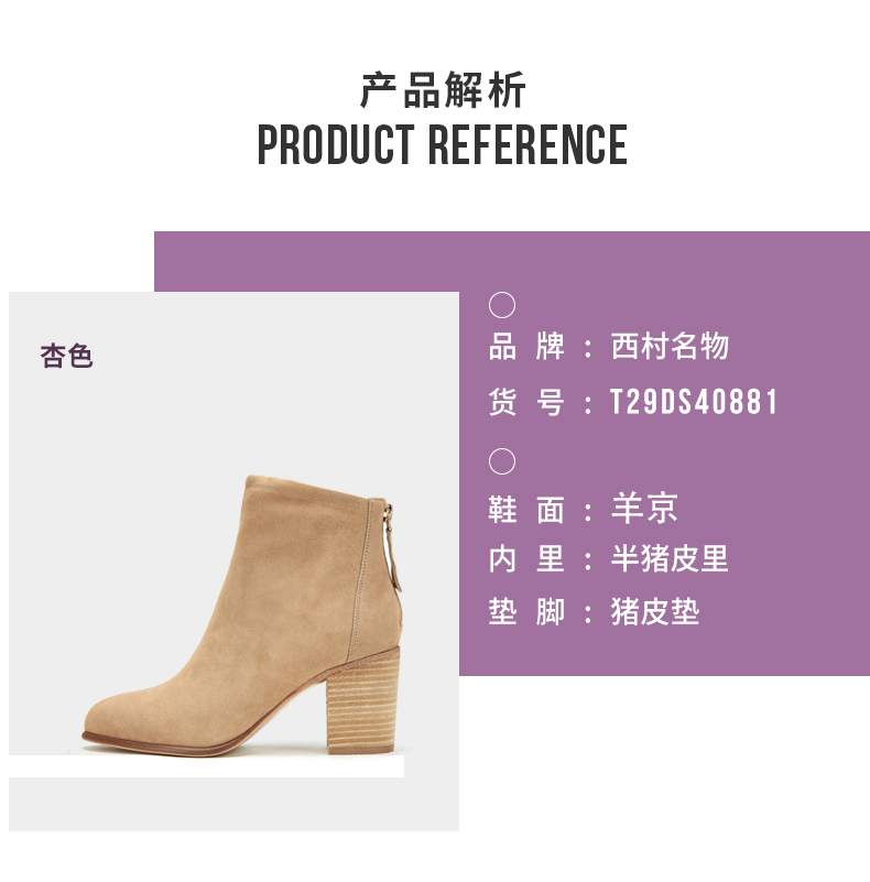西村名物2020春季新款时装靴女中跟粗跟百搭时尚圆头短靴T29DS40881