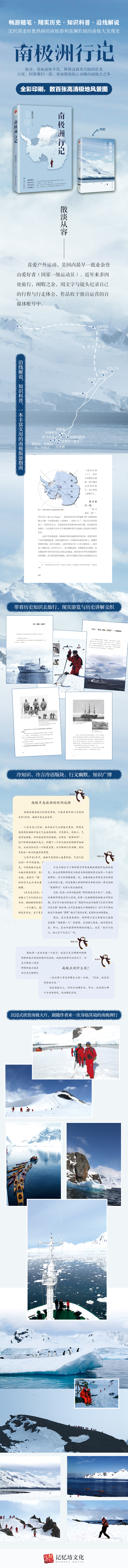 这本书由“行”和“史”两个交叉在一起讲述的故事组成。“行”是关于我们自己的南极半岛之行,“史”则是讲述了那段波澜壮阔的南极大发现的历史。