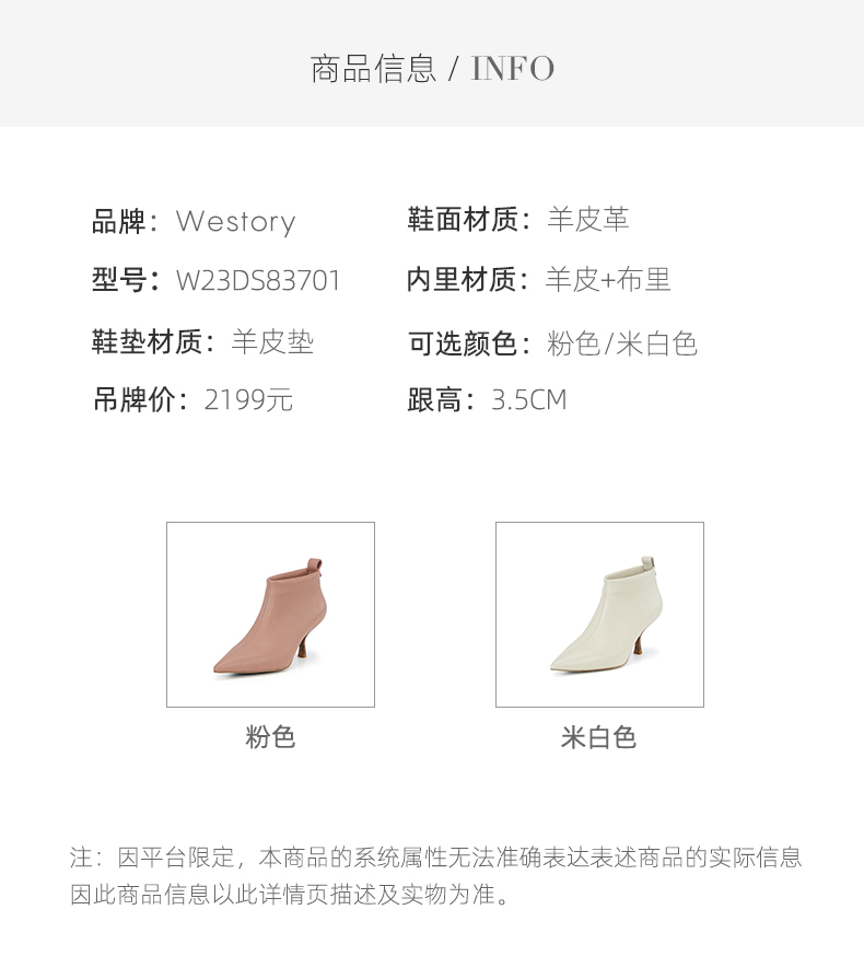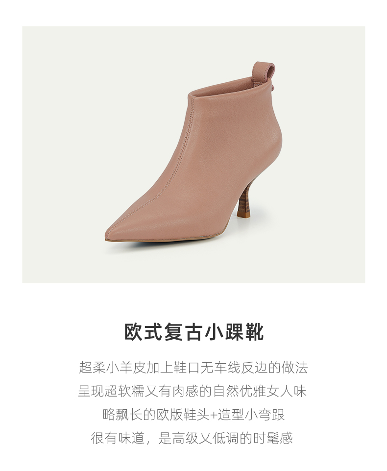 westory2023年秋季新品欧式复古小踝靴羊皮细跟尖头靴短靴女W23DS83701