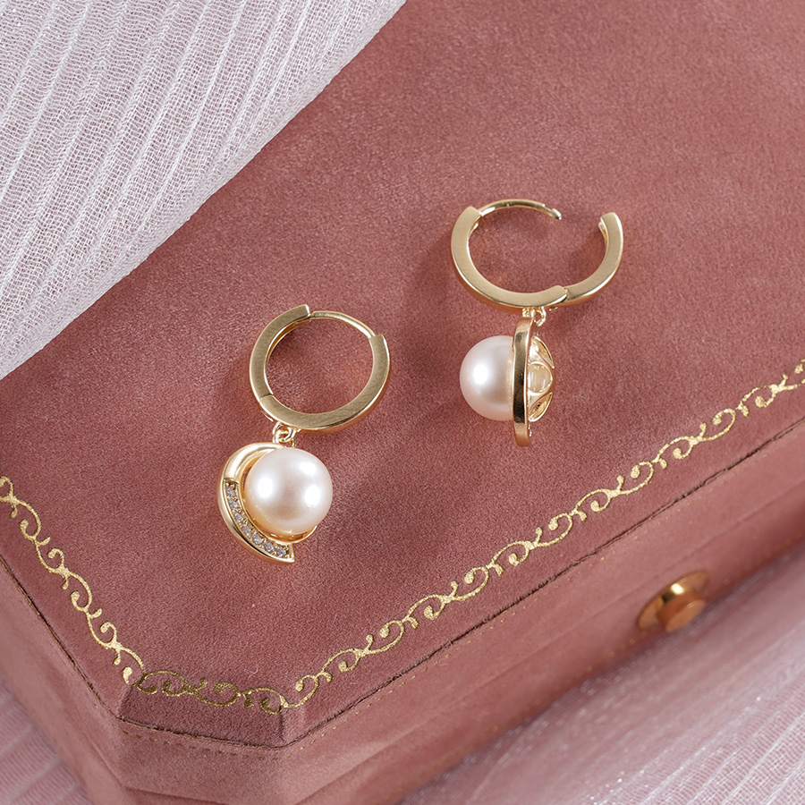 子佩集S925银珍珠耳环【XXEH128】镀金扣环耳圈2401