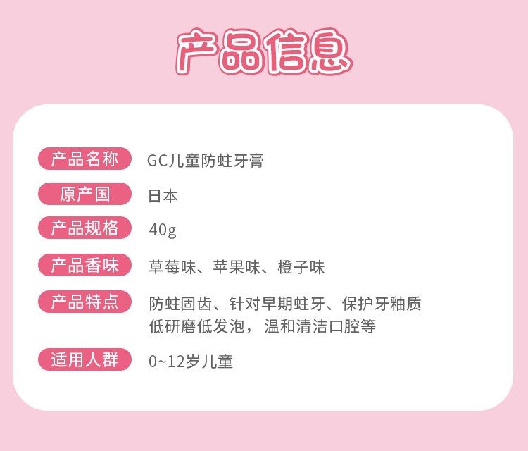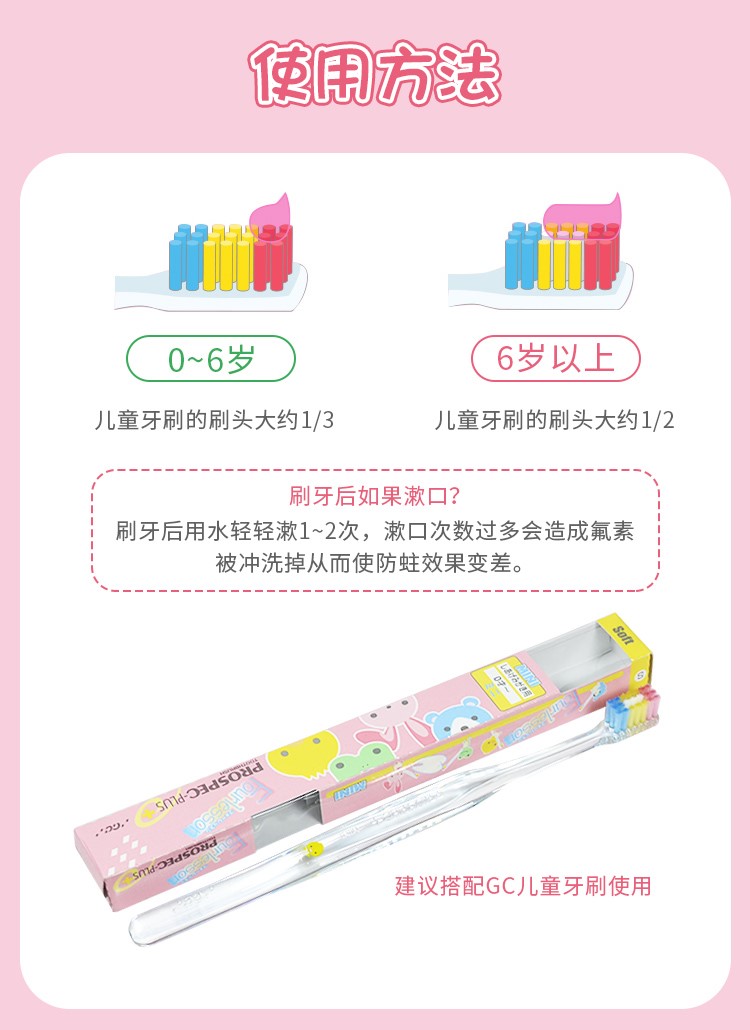 包邮:日本GC儿童牙膏含氟900ppm防蛀牙啫喱