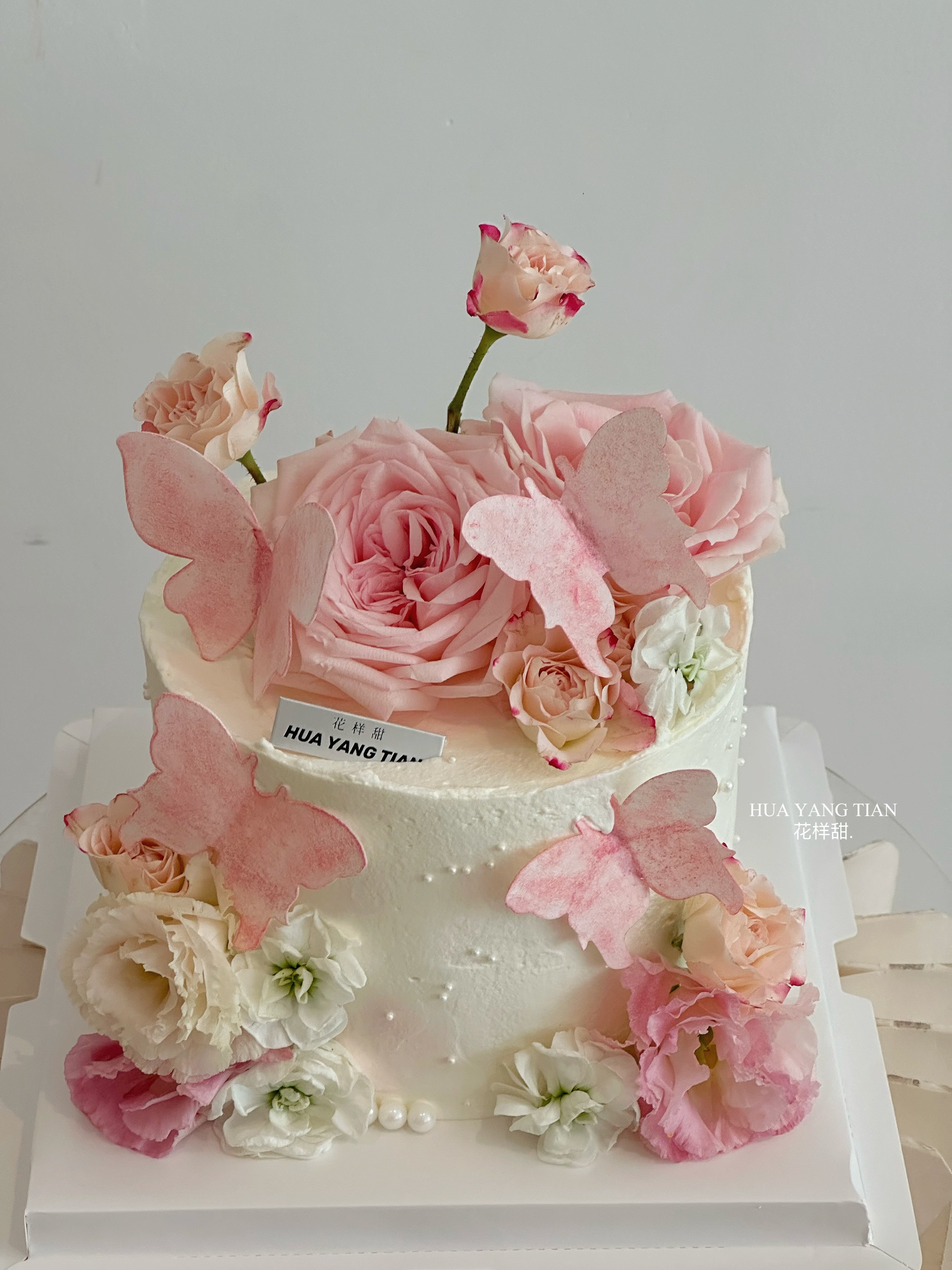 *装饰鲜花选用当季应季花材,经过清洁后包裹食品级锡纸再插入蛋糕中。鲜花不可食用,食用前请取出!拔出鲜花后锡纸易脱落在蛋糕胚中为正常现象,介意者勿拍