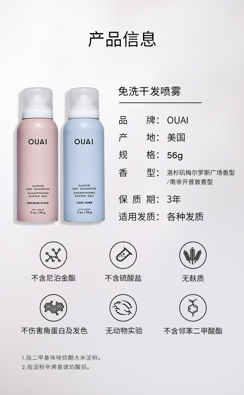 保税直发 OUAI 免洗干发喷雾 56g 洛杉矶梅尔罗斯广场香型/南非开普敦香型/南非开普敦香型+洛杉矶梅尔罗斯广场香型