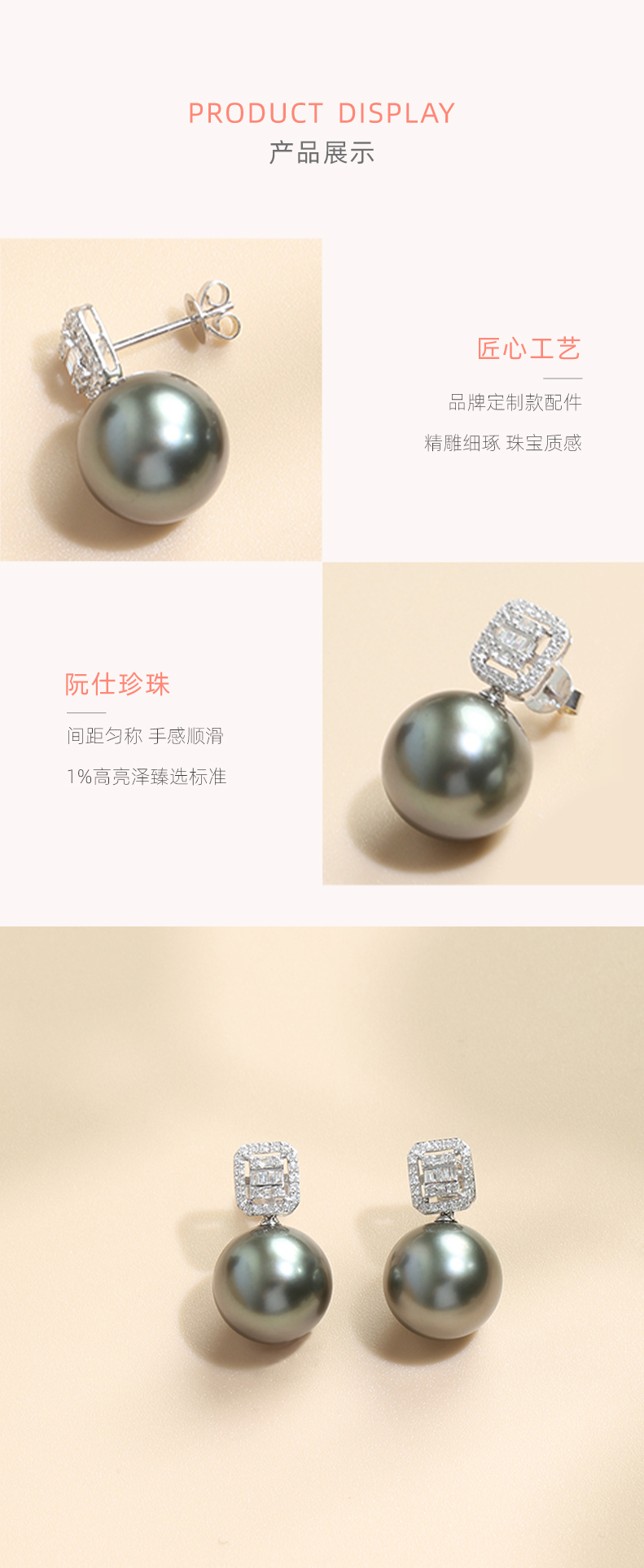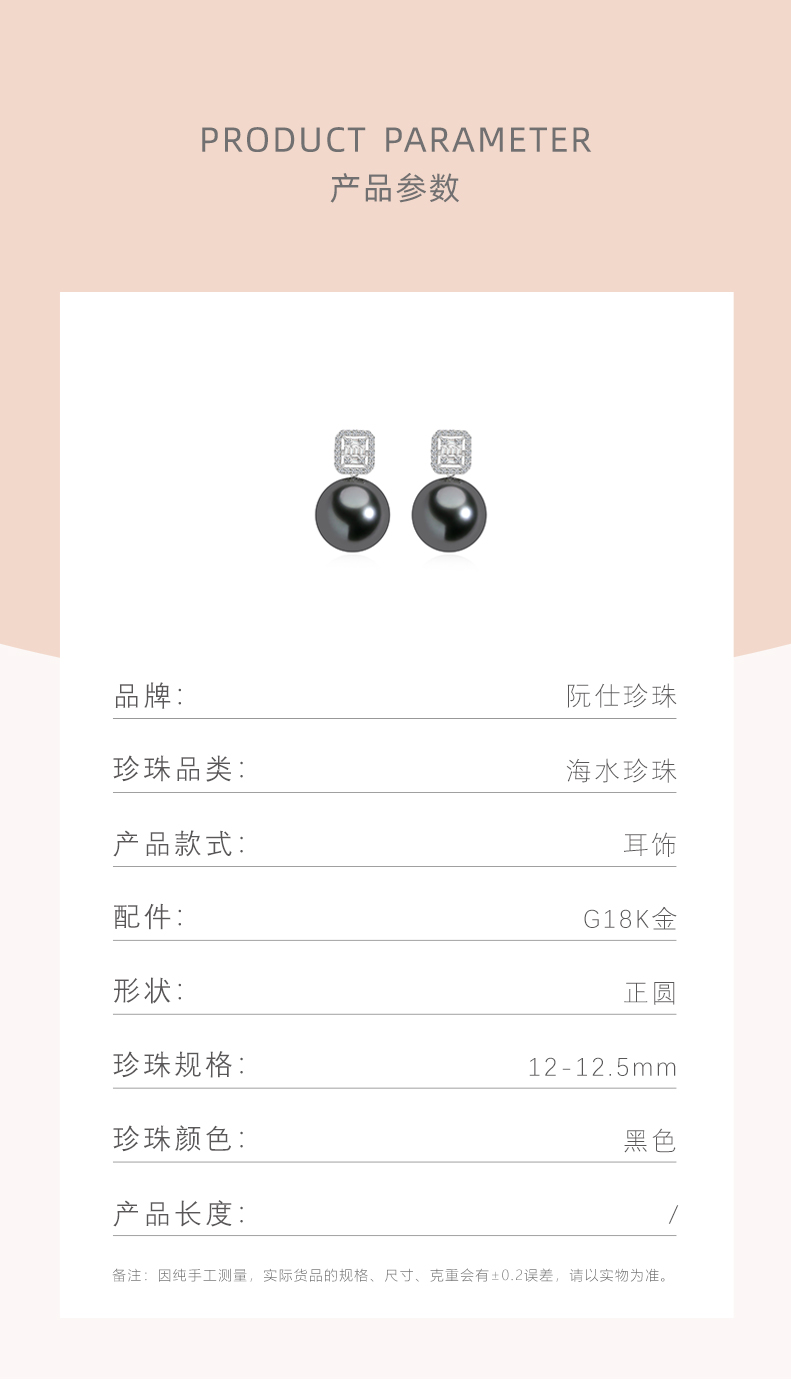 阮仕礼颂系列G18K金大溪地黑珍珠耳饰 12-12.5mm 正圆 无瑕 极强光