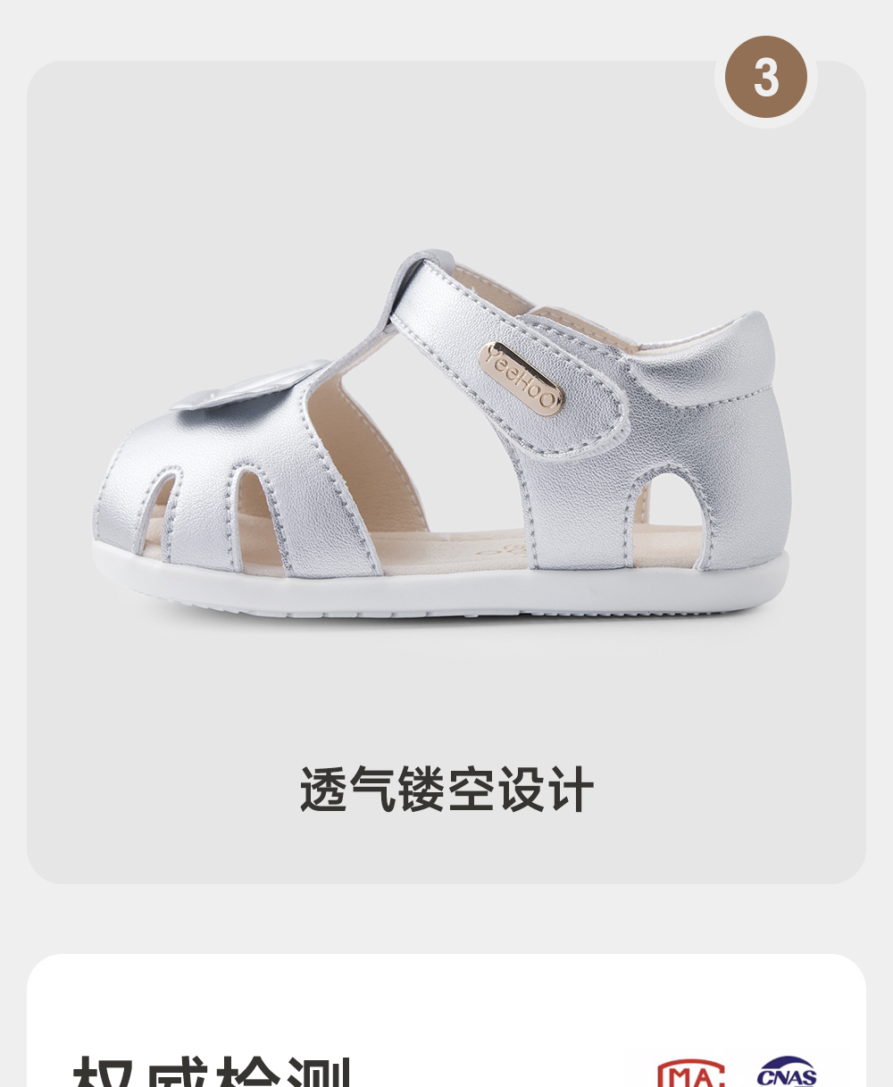 英氏儿童凉鞋夏季女宝透气鞋子软底魔术贴2024新款YFXFJ2Q022A