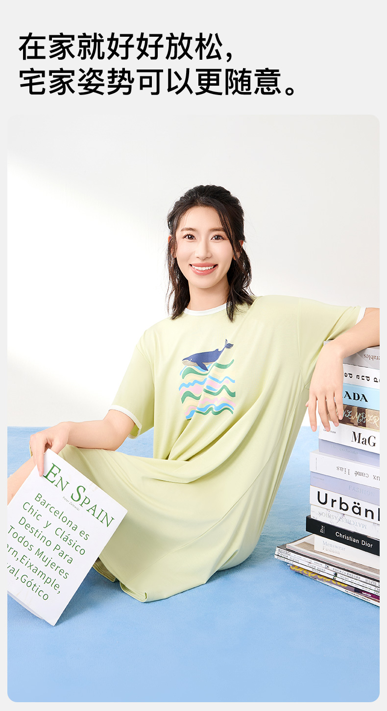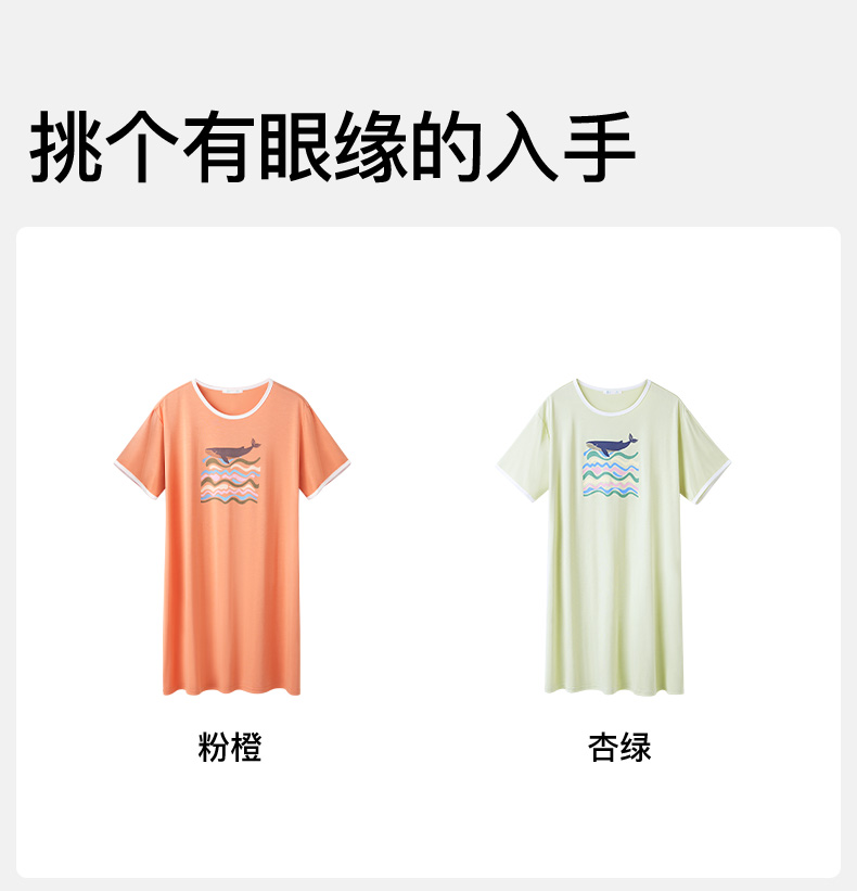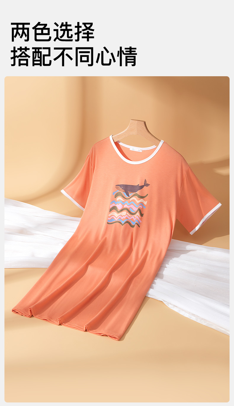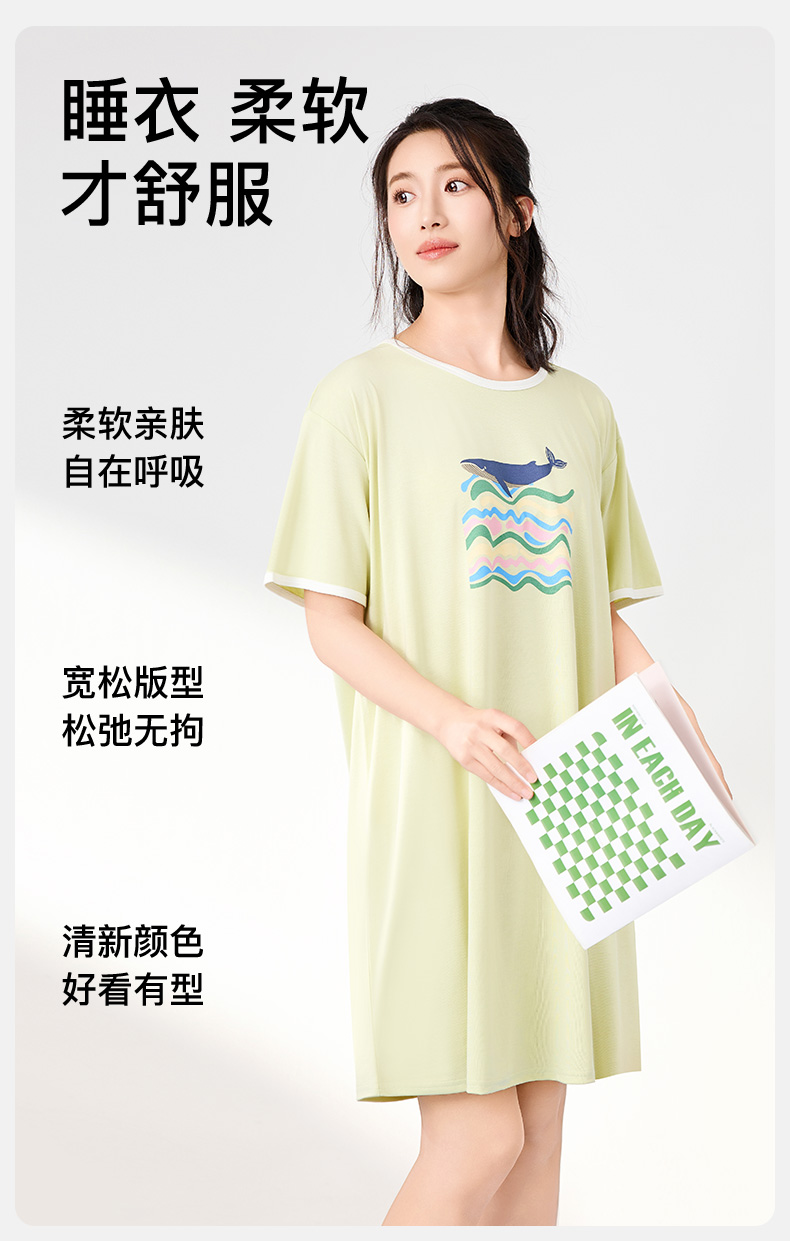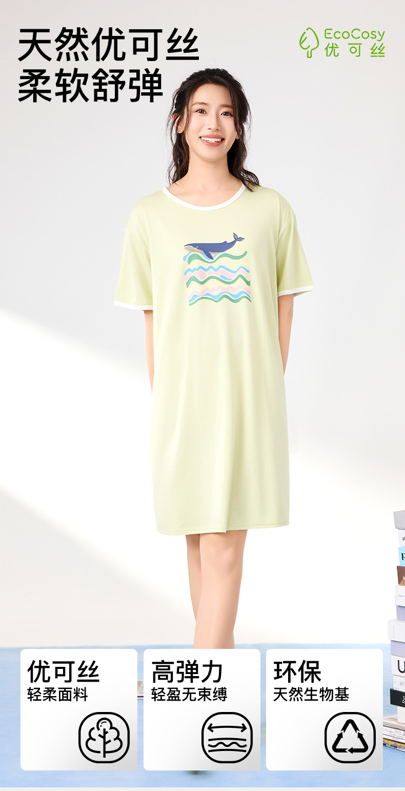 【优可丝系列】爱帝清爽海洋风冰丝短袖睡裙