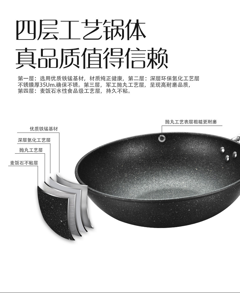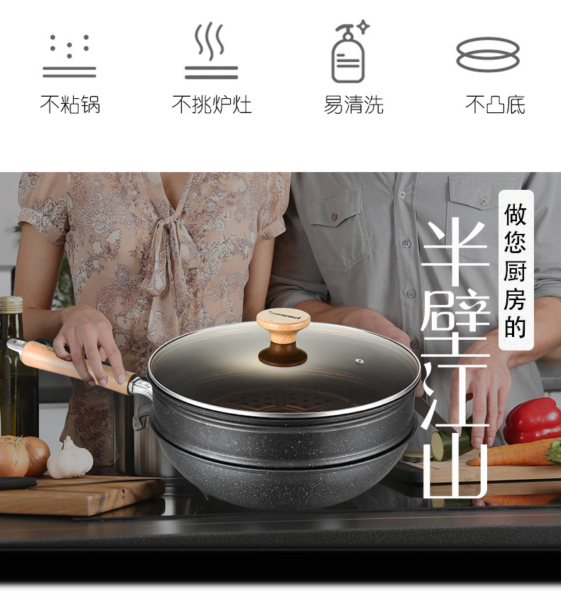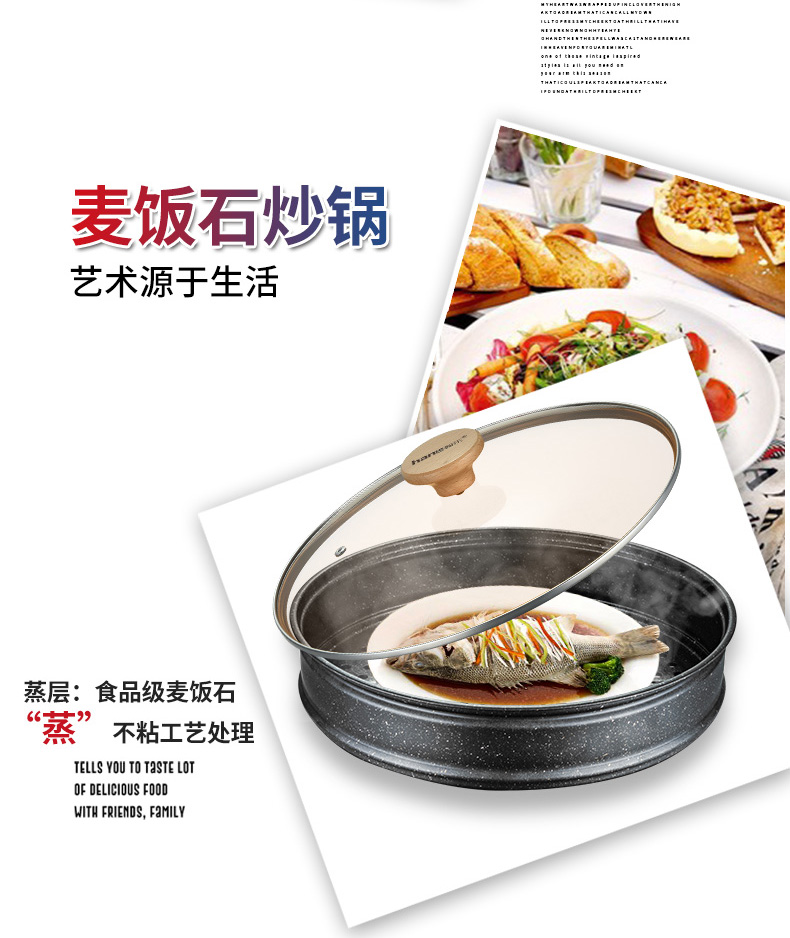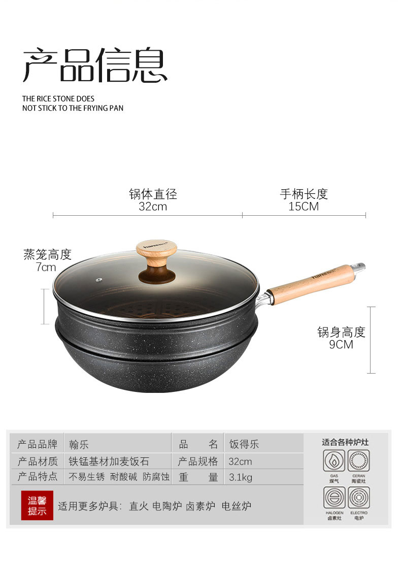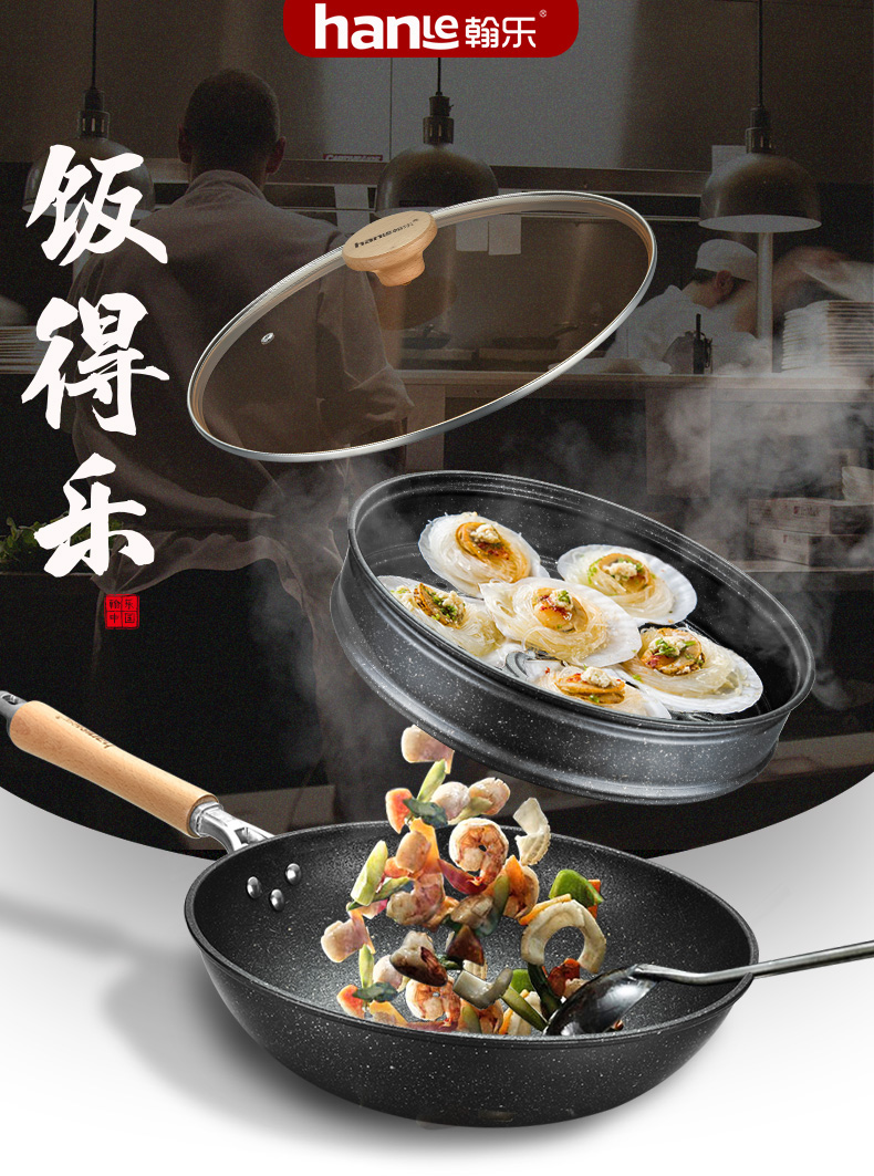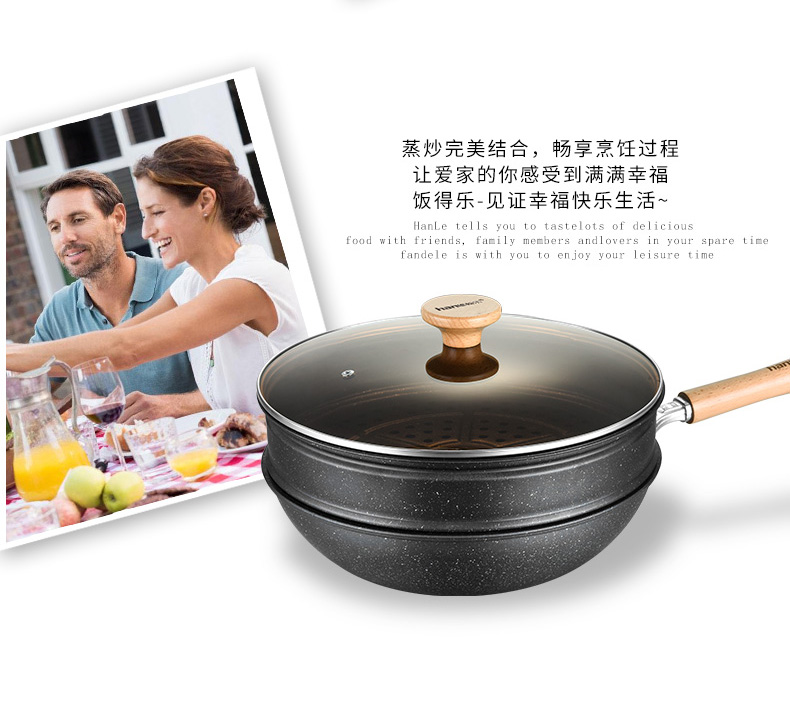 翰乐饭得乐麦饭石不粘炒锅可当蒸锅【送蒸笼】32CM