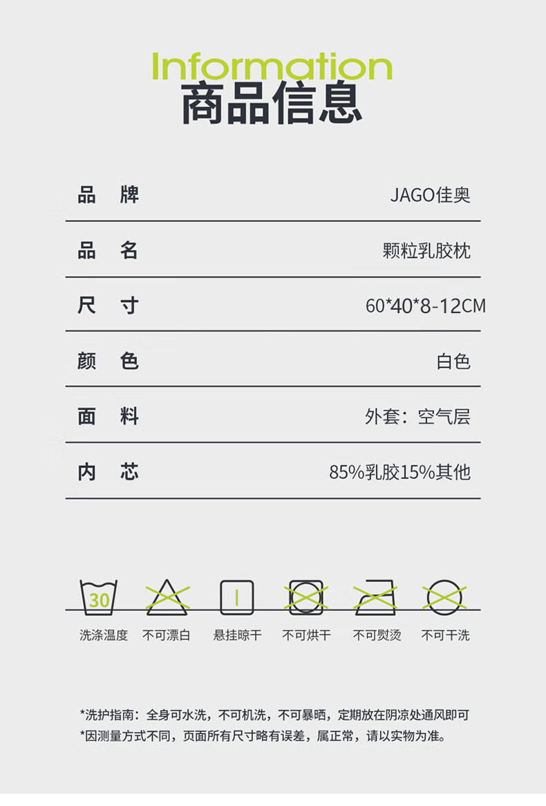 佳奥(JAGO) 泰国天然乳胶枕头90%天然乳胶波浪颗粒乳胶枕按摩枕头成人单枕X 单只 乳胶枕