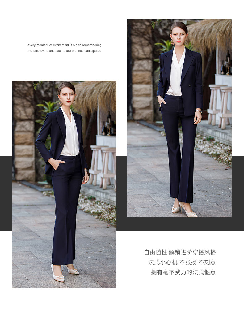 IWY/高级感时尚简约藏青色职业套裤新款女秋季通勤西服外套CP1781