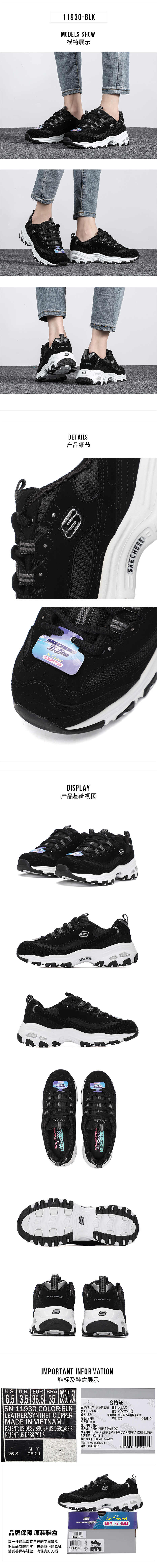 Skechers斯凯奇女鞋复古厚底增高休闲鞋防滑耐磨运动鞋舒适缓震熊猫鞋女 11930/BLK