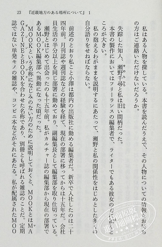 收录的文本是从各种媒体中摘录的,所有内容都与 “近畿地区的某个地方” 有关。为什么要发表这样的内容呢?这个背景与我的一些极其私人的事情有关。希望能让我向您讲述这些。我正在寻找一个人。