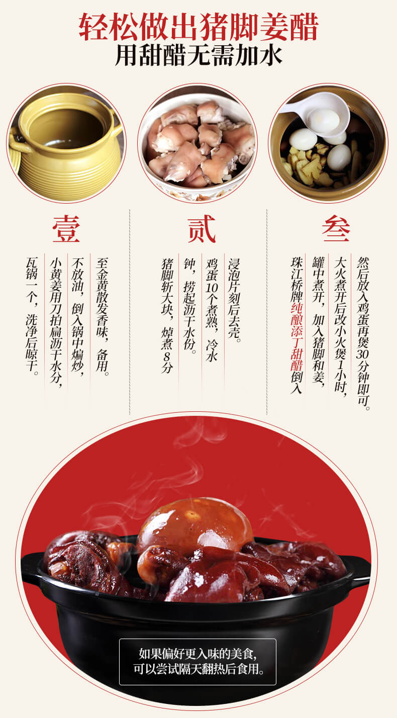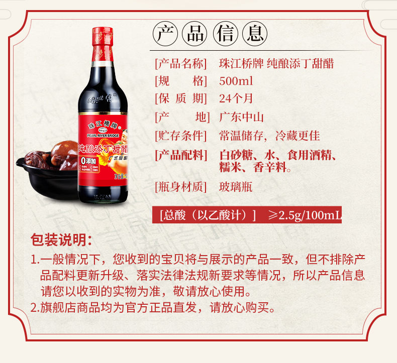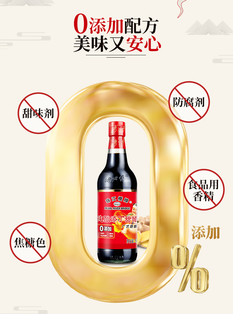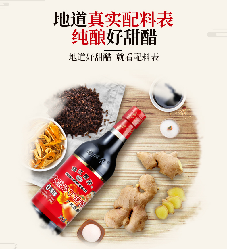 珠江桥牌 纯酿添丁甜醋500mlX12瓶