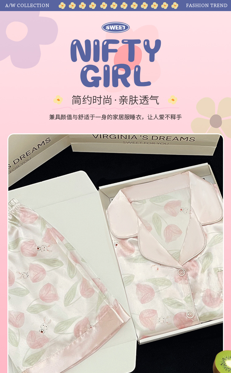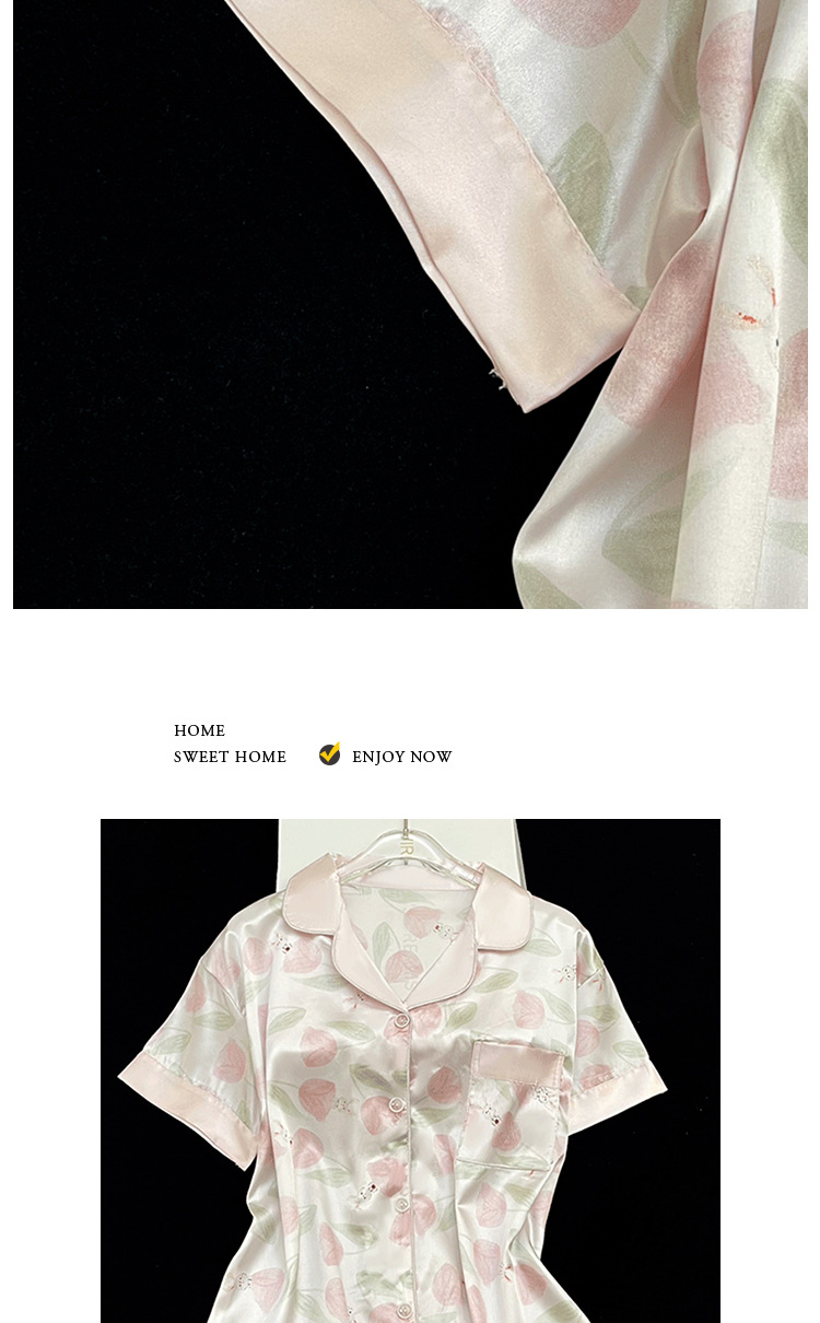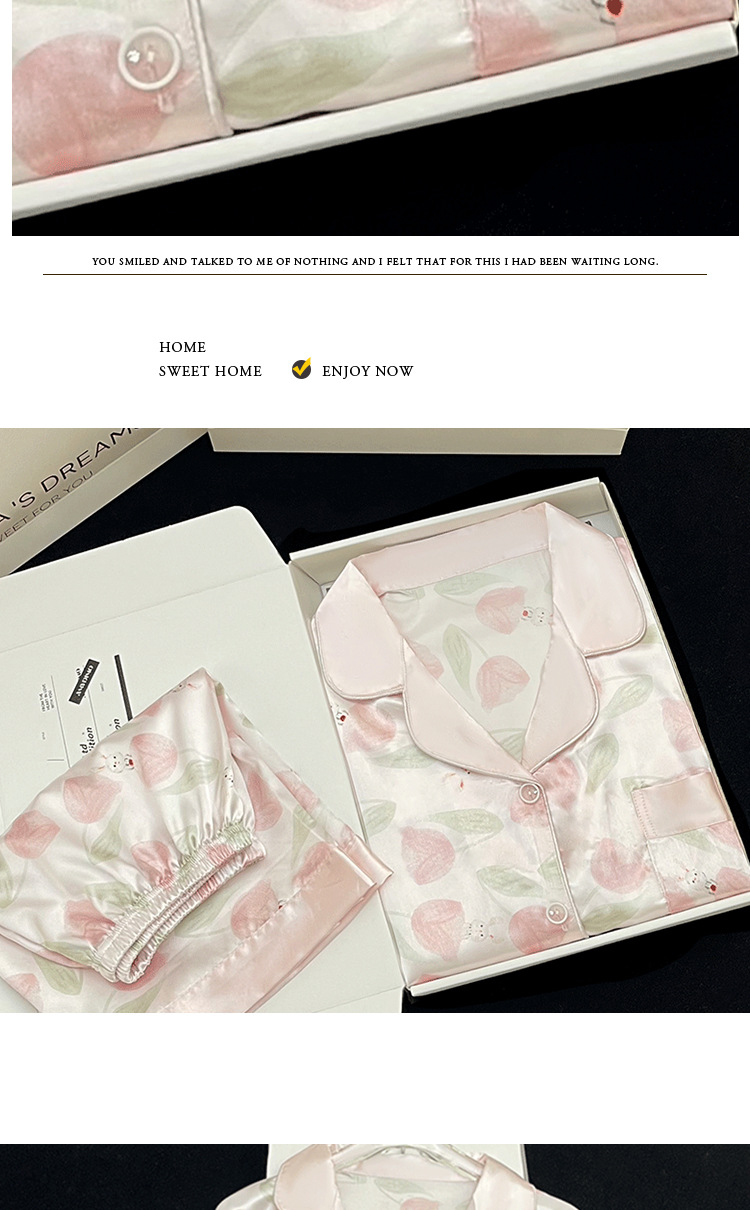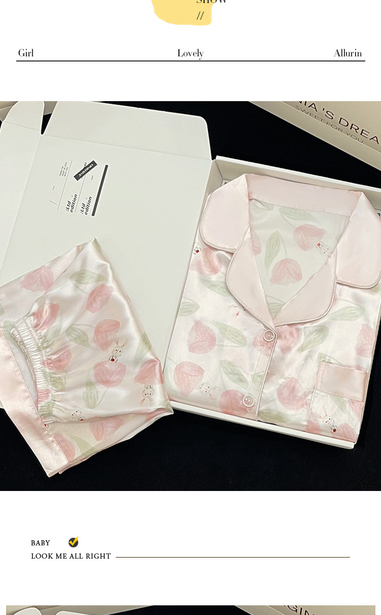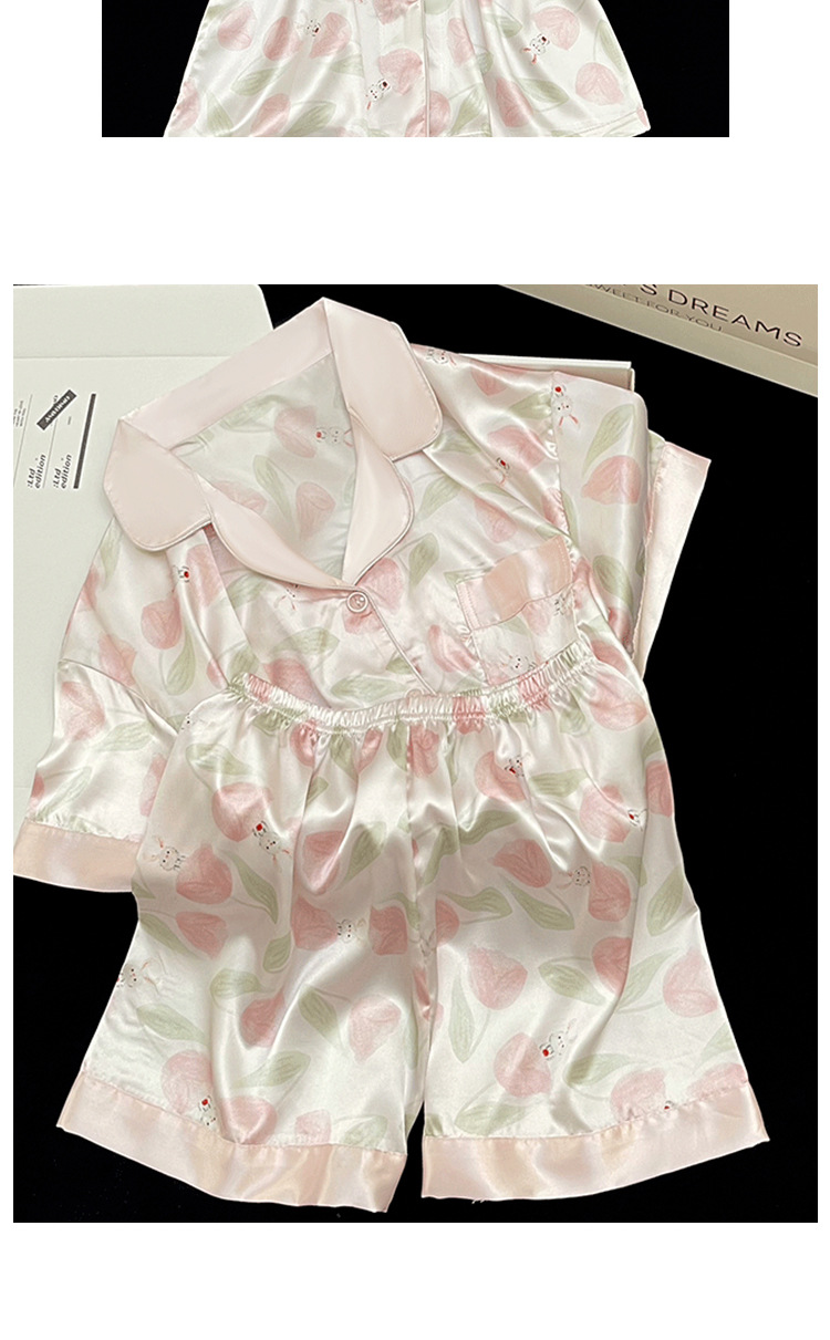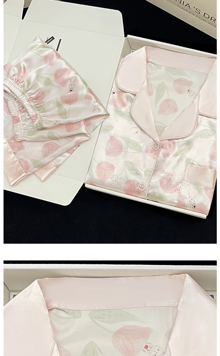 【小红书郁金香冰丝睡衣】夏季短袖短裤轻奢氛围感家居服 网红风家居服套装 修饰颈部线条 环保活性印染 自在不束缚