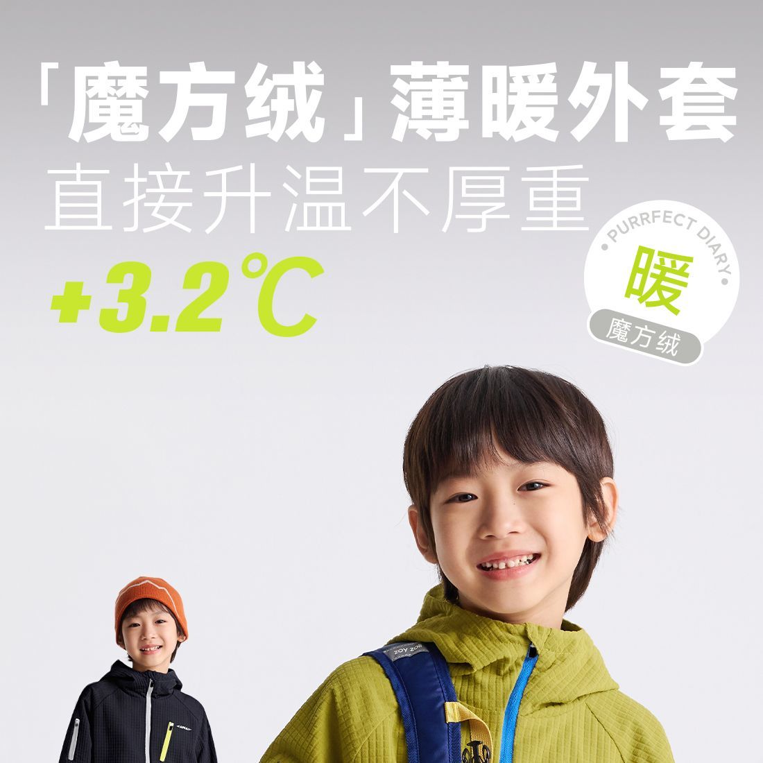 【咕噜日记】儿童加绒连帽外套2025秋冬男童女童轻暖冲锋衣锁温抗静电PDWT2505