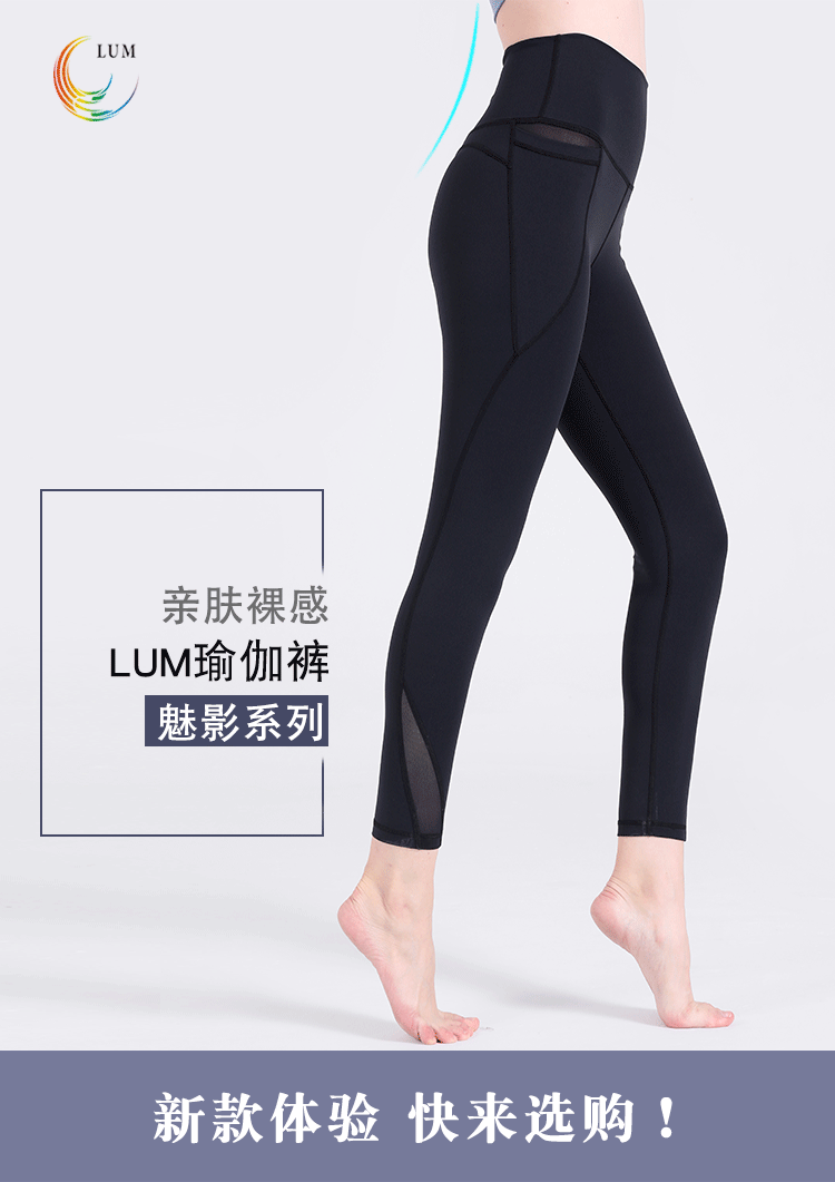 LUM99101露檬秋冬新款瑜伽拼网长裤双面磨毛面料轻薄裸感