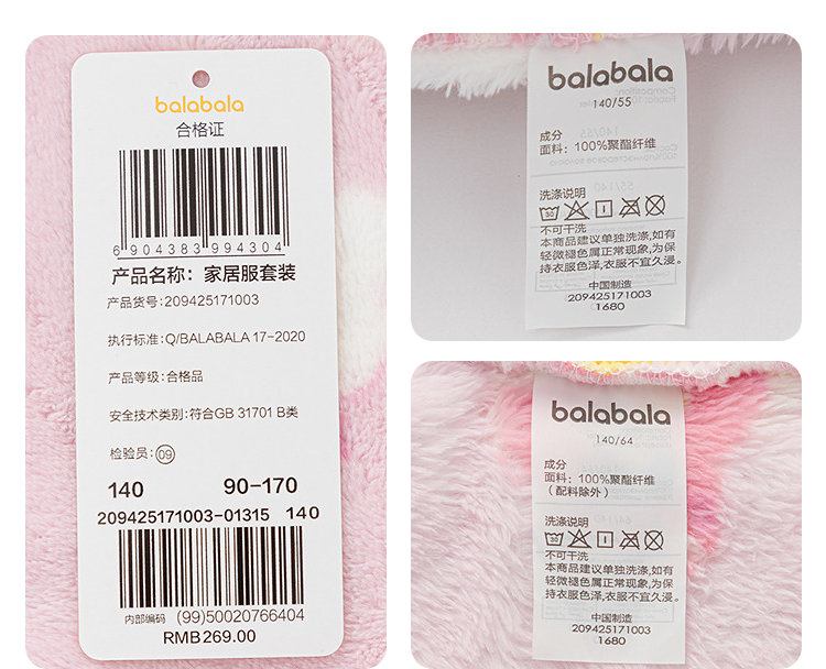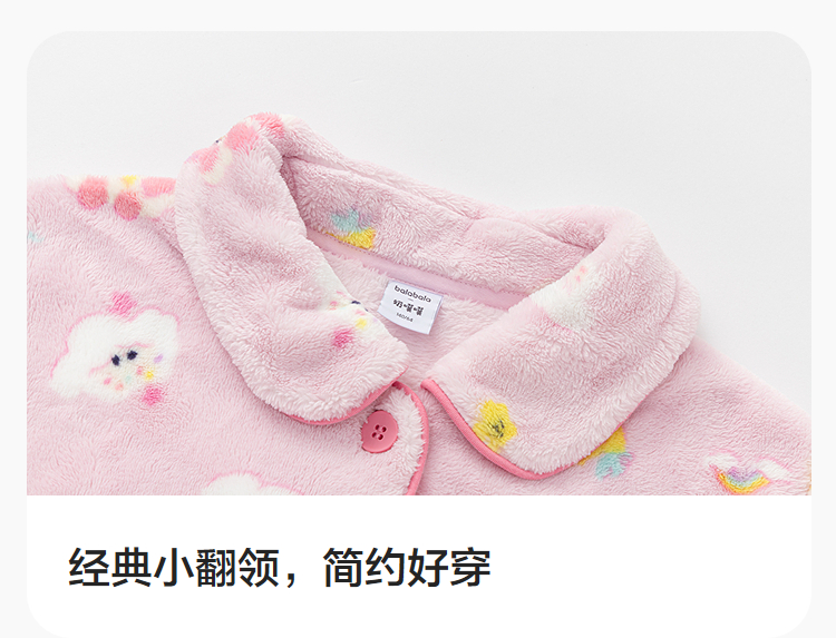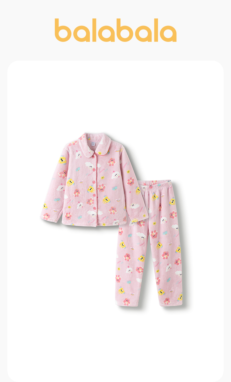 【奶噗噗IP】巴拉巴拉balaOne儿童家居服套装女2025冬新款法兰绒
