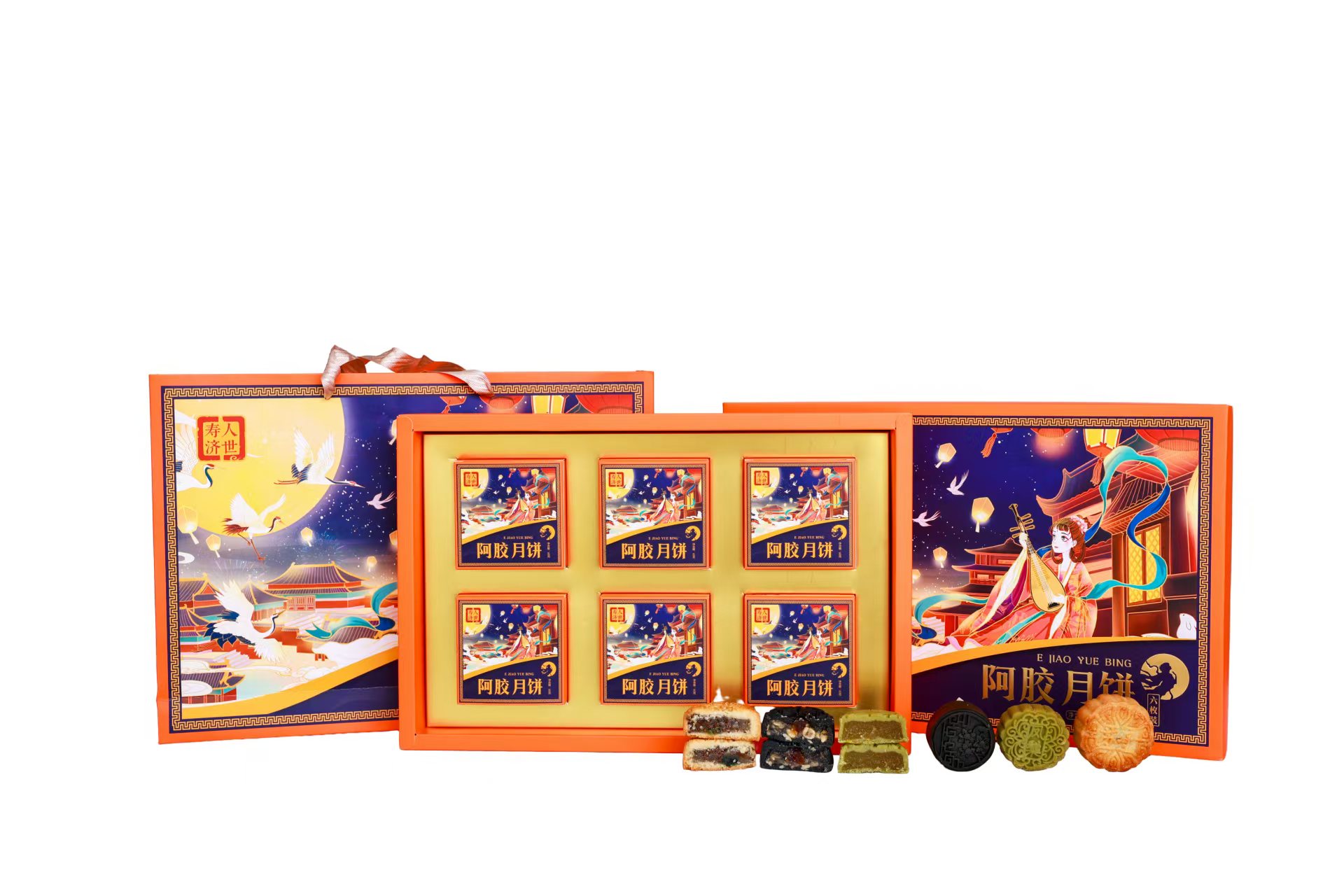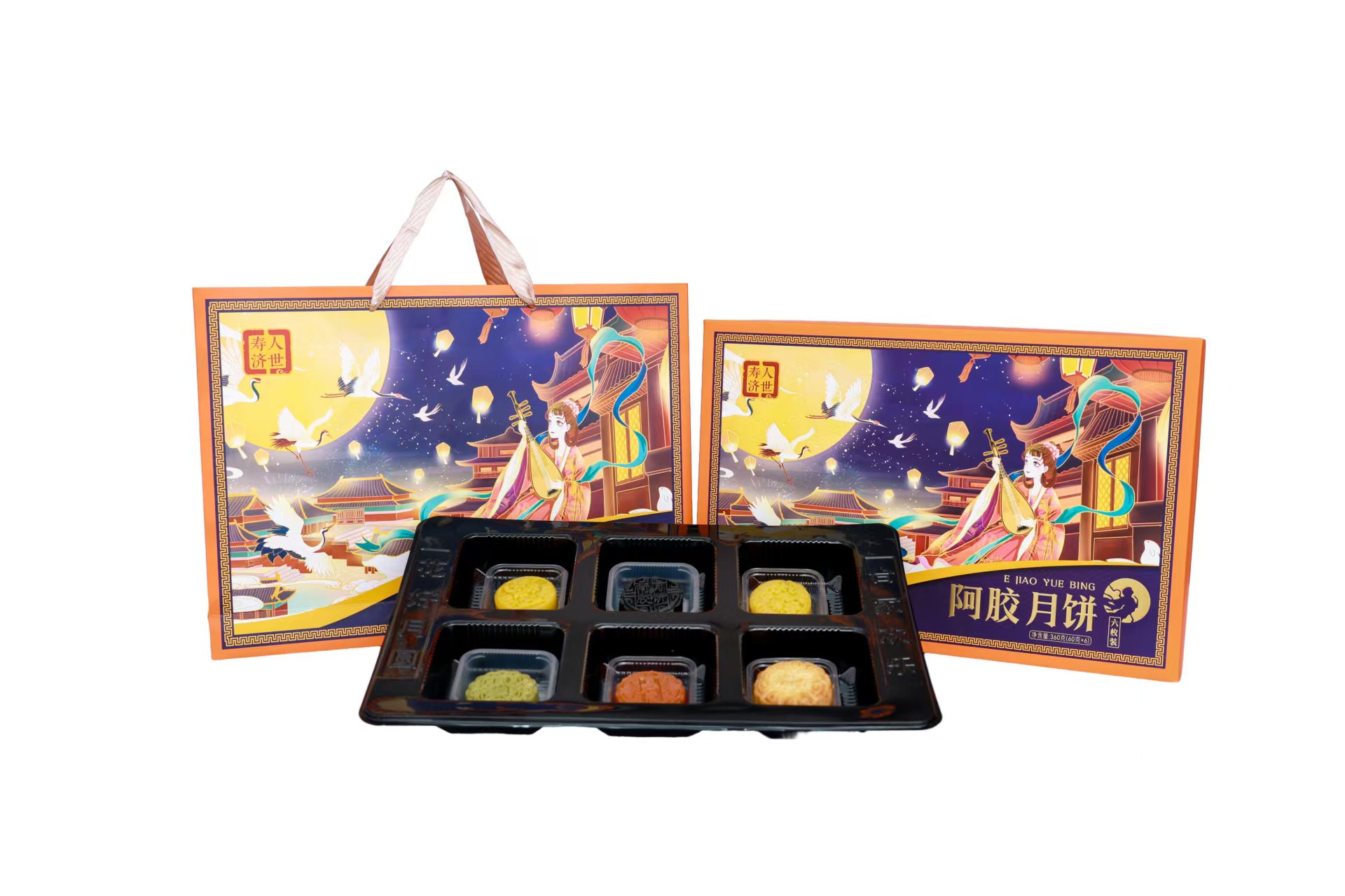 一盒六个月饼,两个阿胶凤梨,两个阿胶五仁,两个阿胶苏子口味