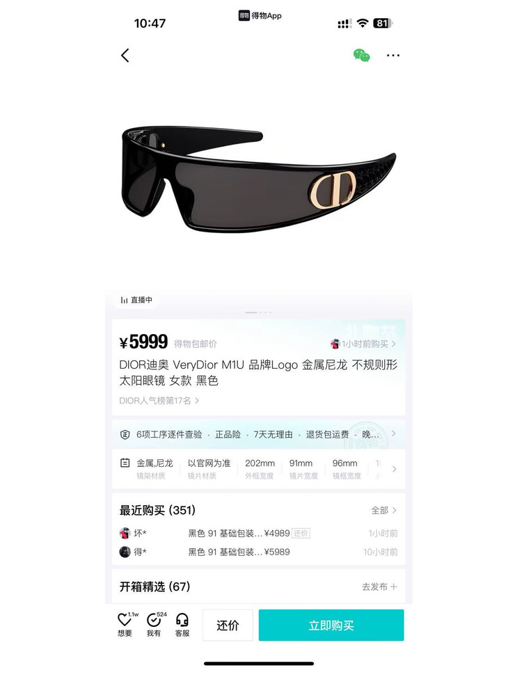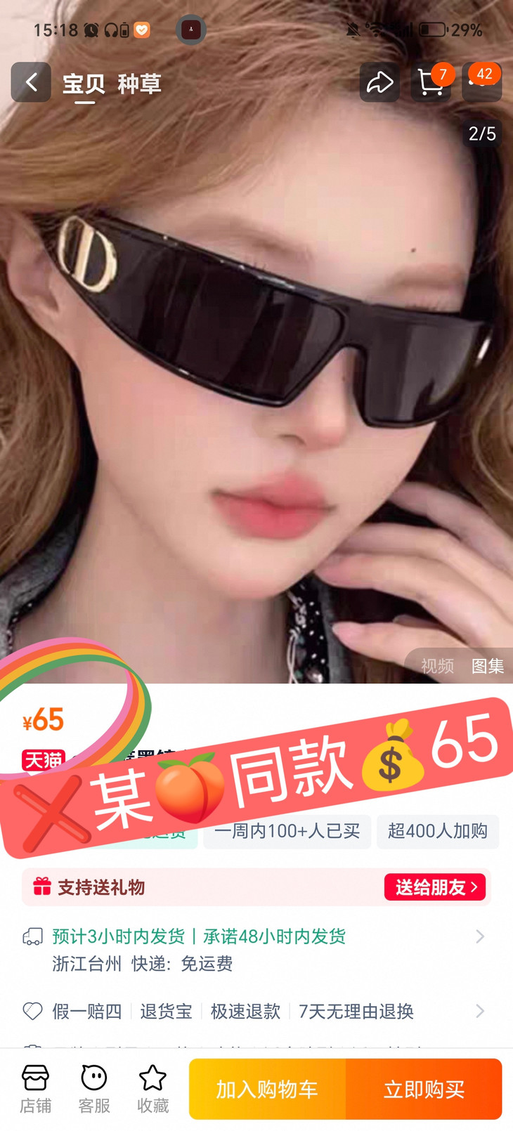 某宝同款也卖65👇 线下专柜同款5k+👇👇👇 关键团购价真的很有诚意 原价好几千的墨镜 我这里只要零头 不卖垃圾货 最高品质 买一副能用几年