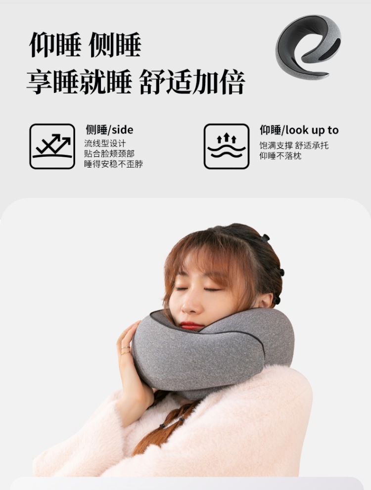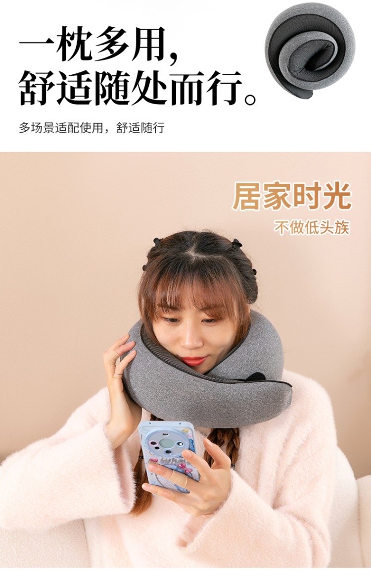 【便携记忆棉护颈枕】✅便携带u型颈椎记忆棉蜗牛枕户外旅行汽车飞机护颈枕头办公室午休。ry