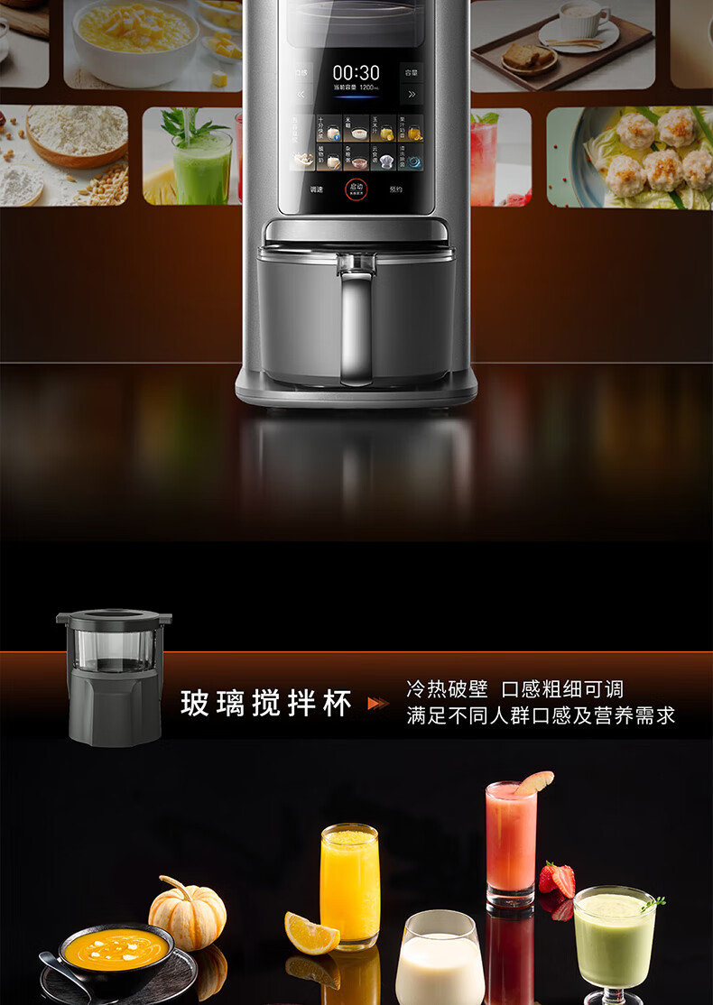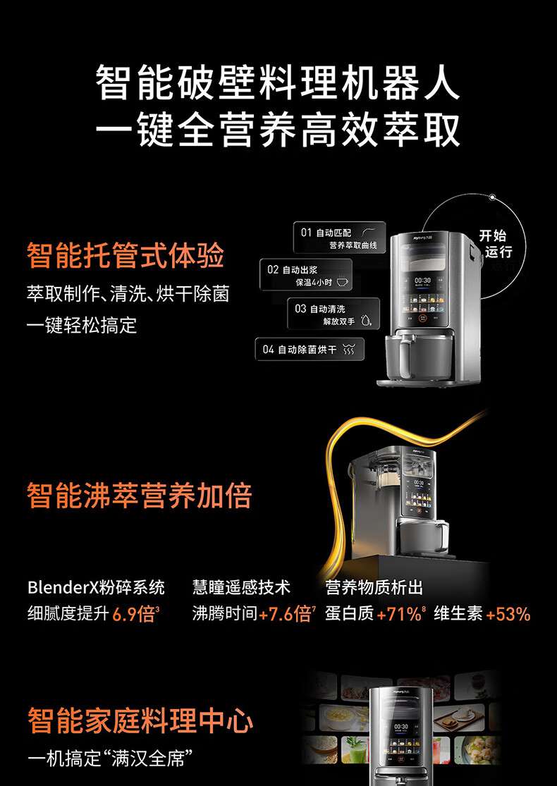 九阳轻音免手洗家用全自动变频破壁料理机器人2-4人五谷杂粮豆浆32分贝1.5L破壁机Y8