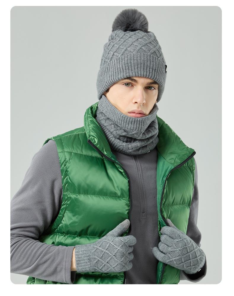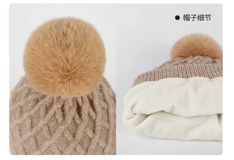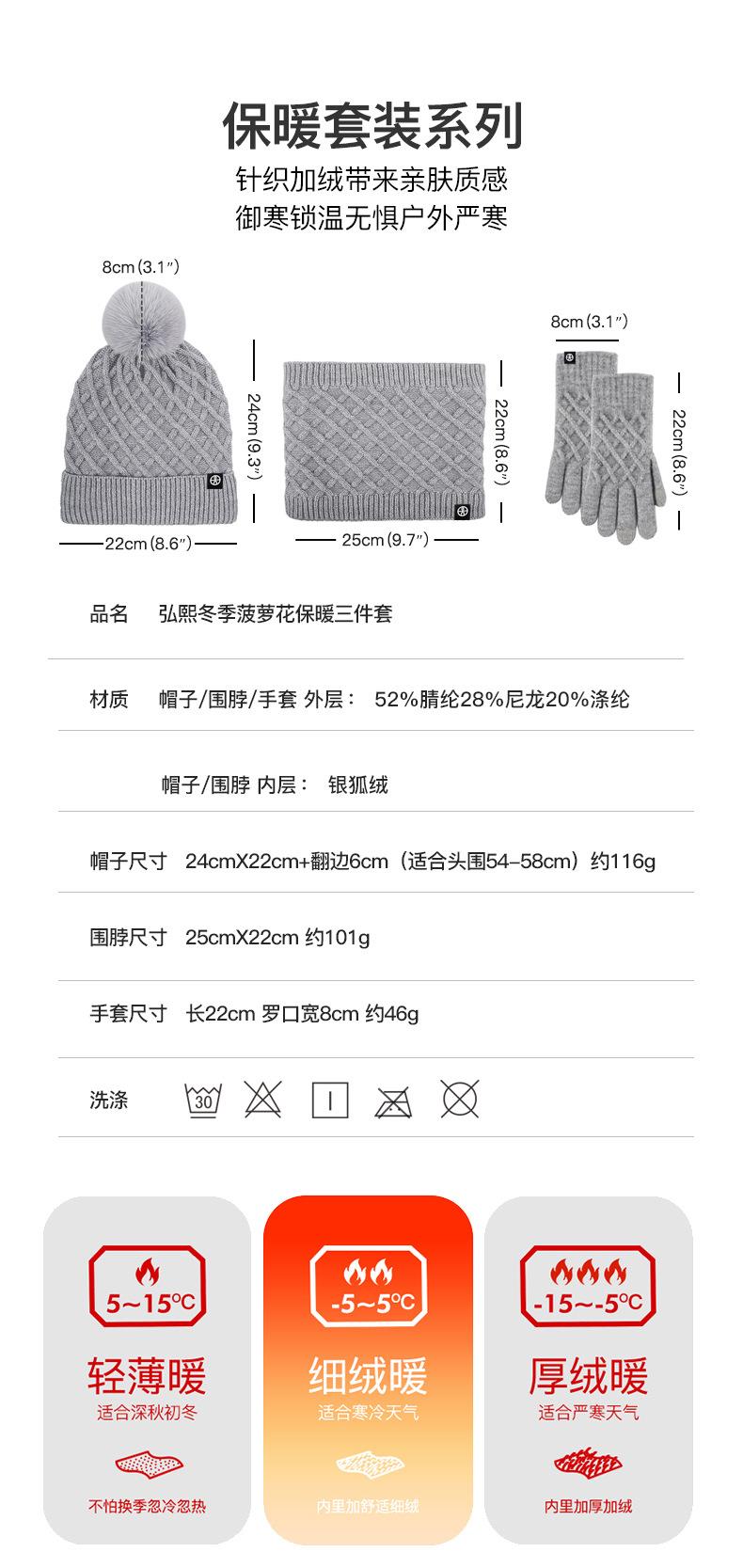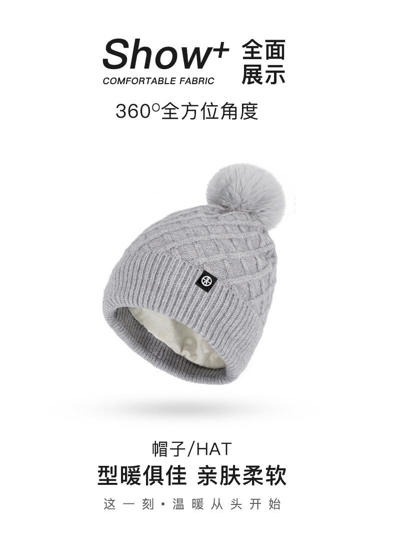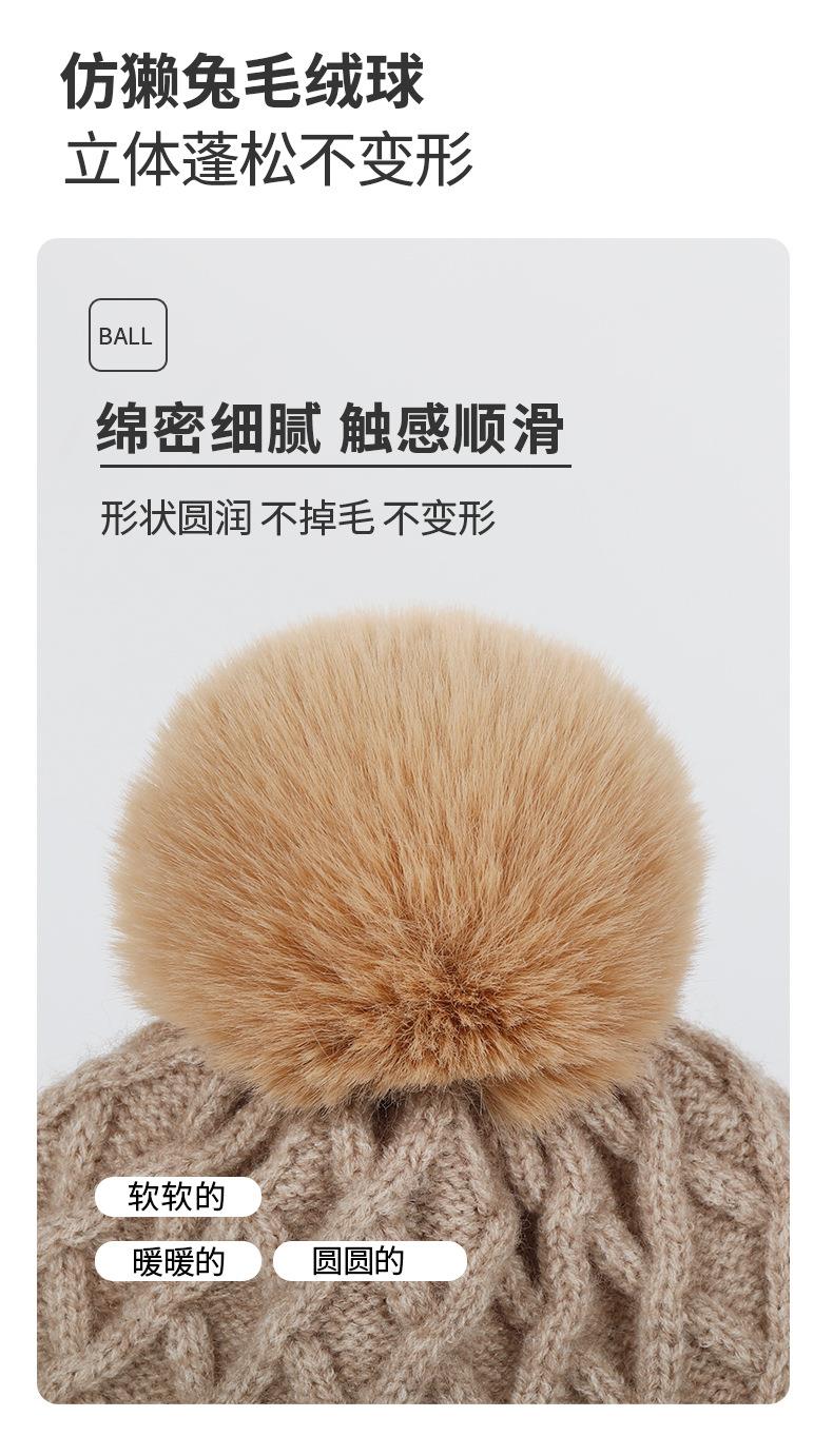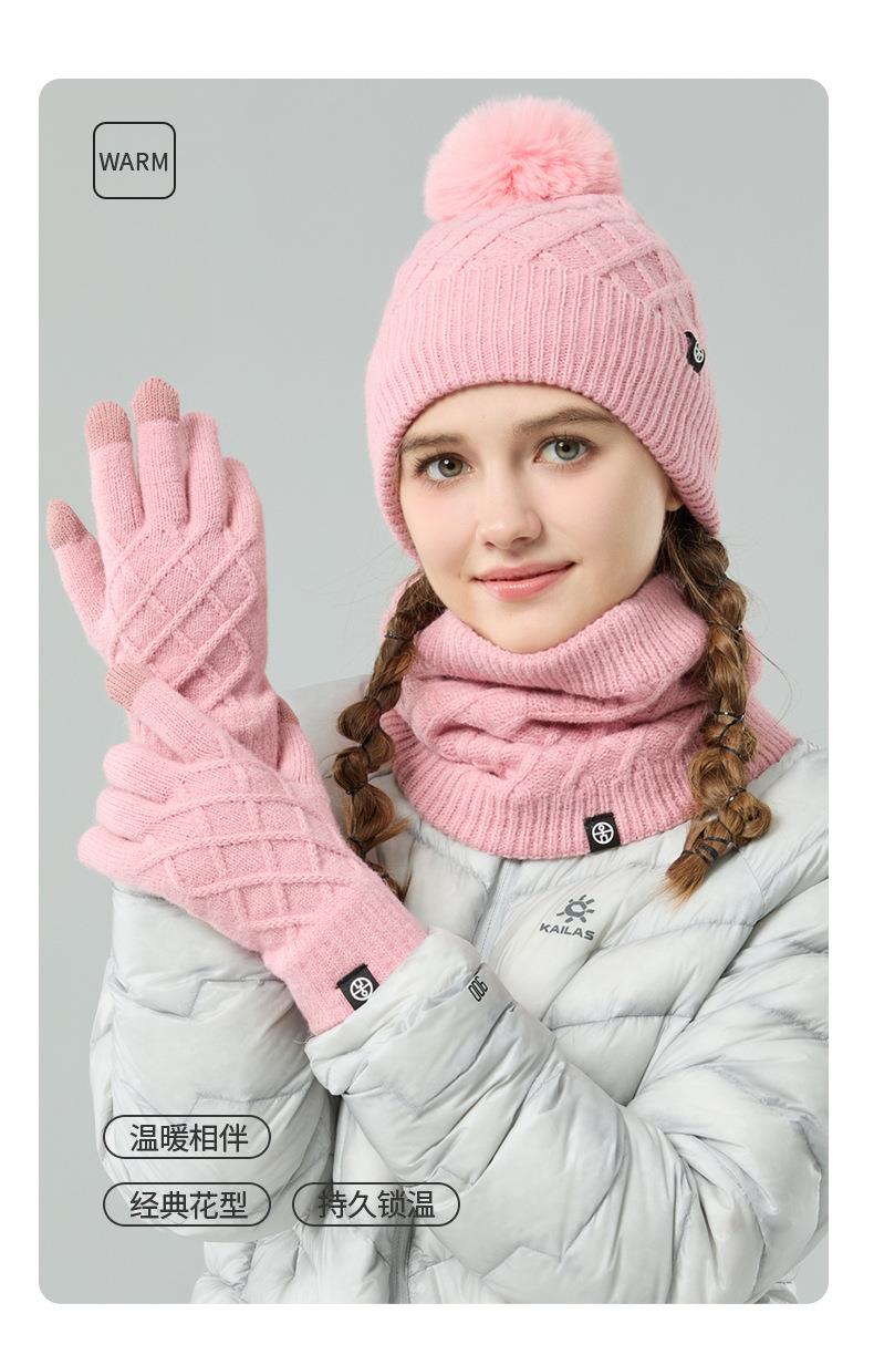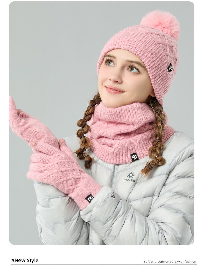 帽子围巾手套三件套冬季亚马逊加绒户外保暖毛球针织帽子三件套装