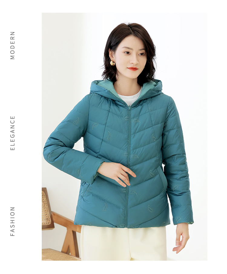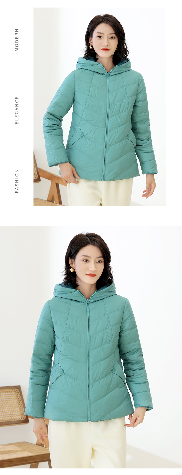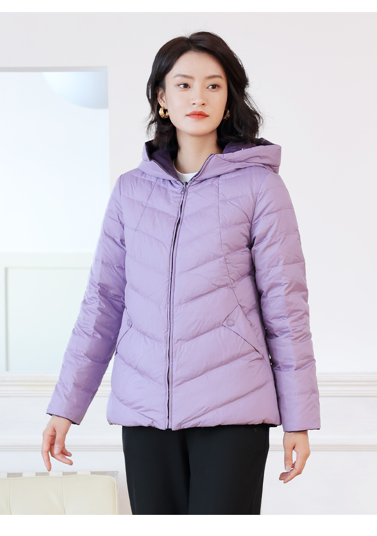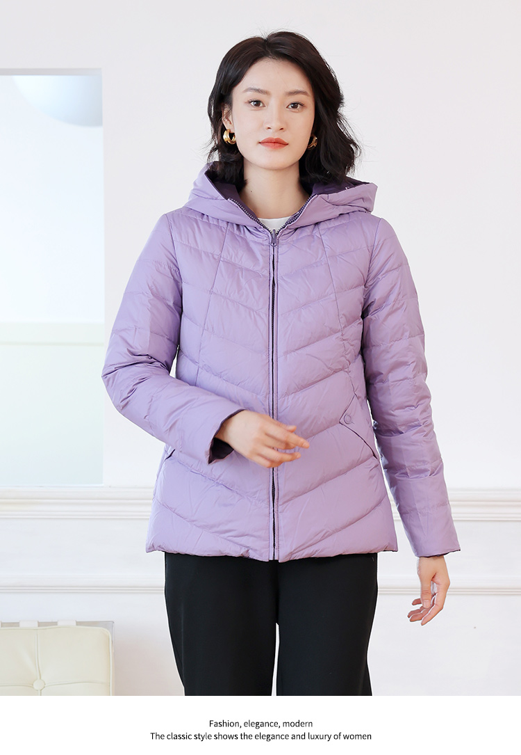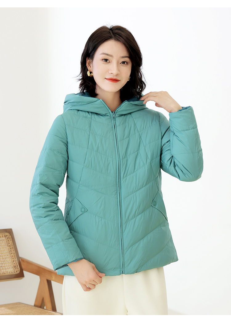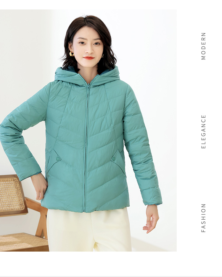 佐尔美冬季新款 通勤简约双面穿连帽短款羽绒服女E14YY35