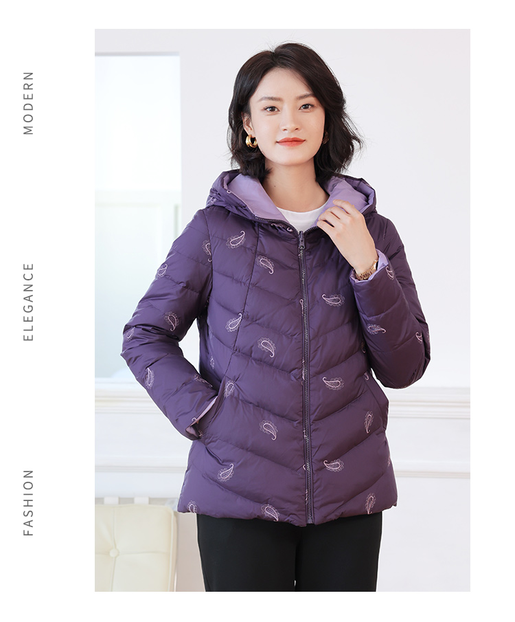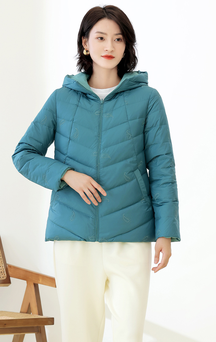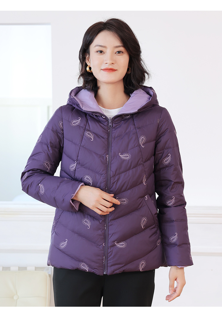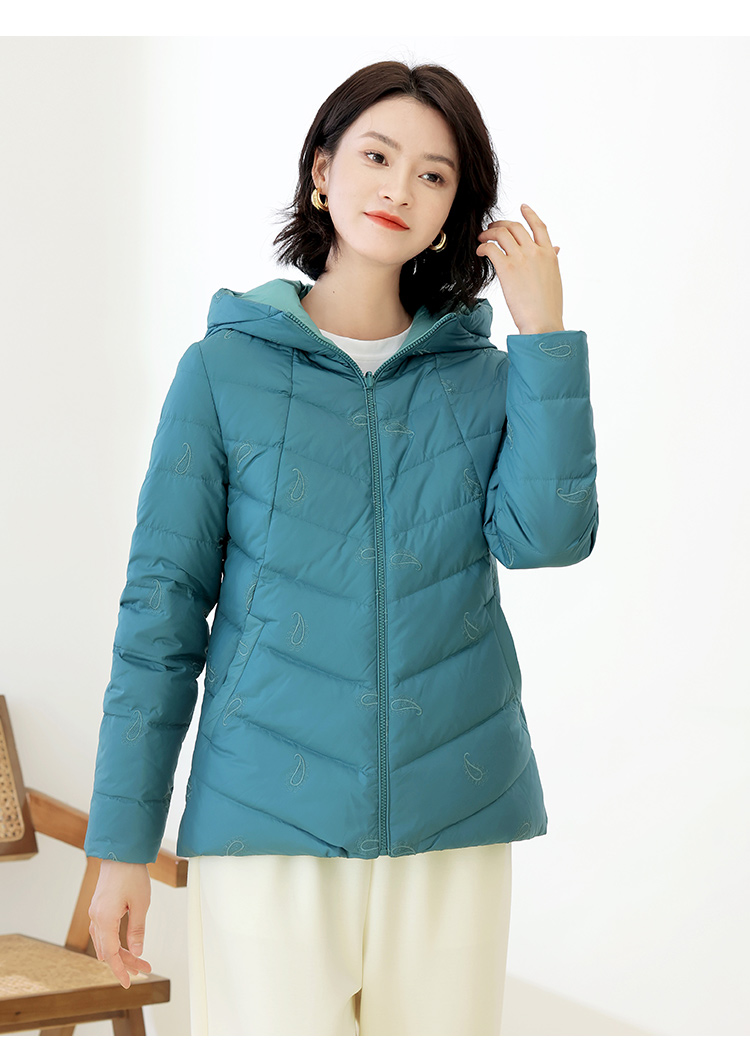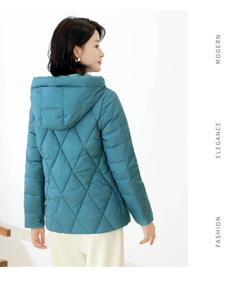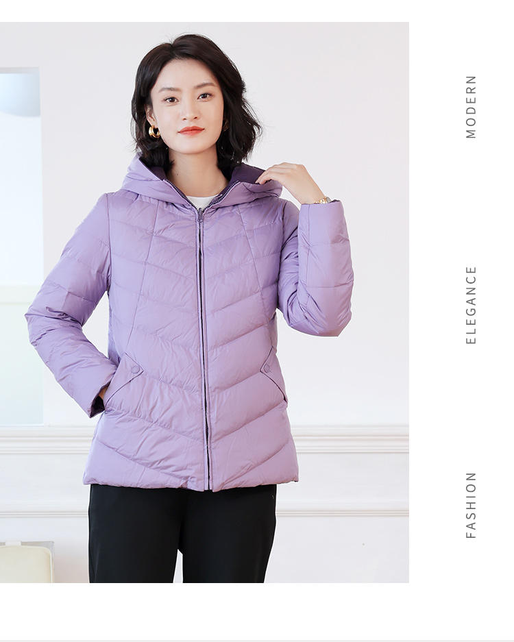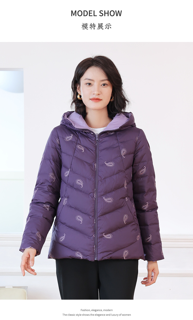 佐尔美冬季新款 通勤简约双面穿连帽短款羽绒服女E14YY35