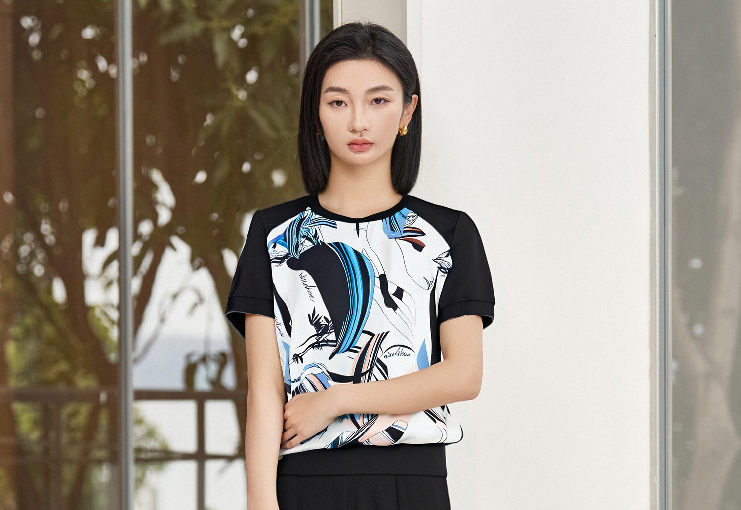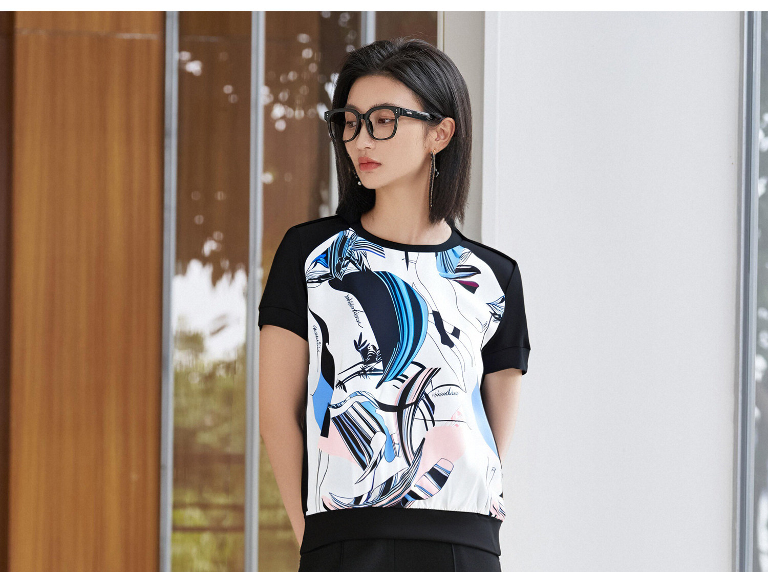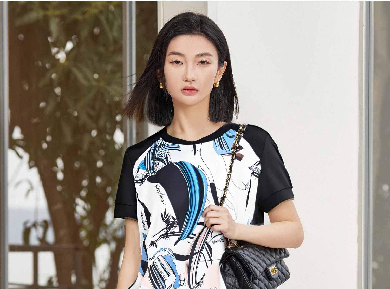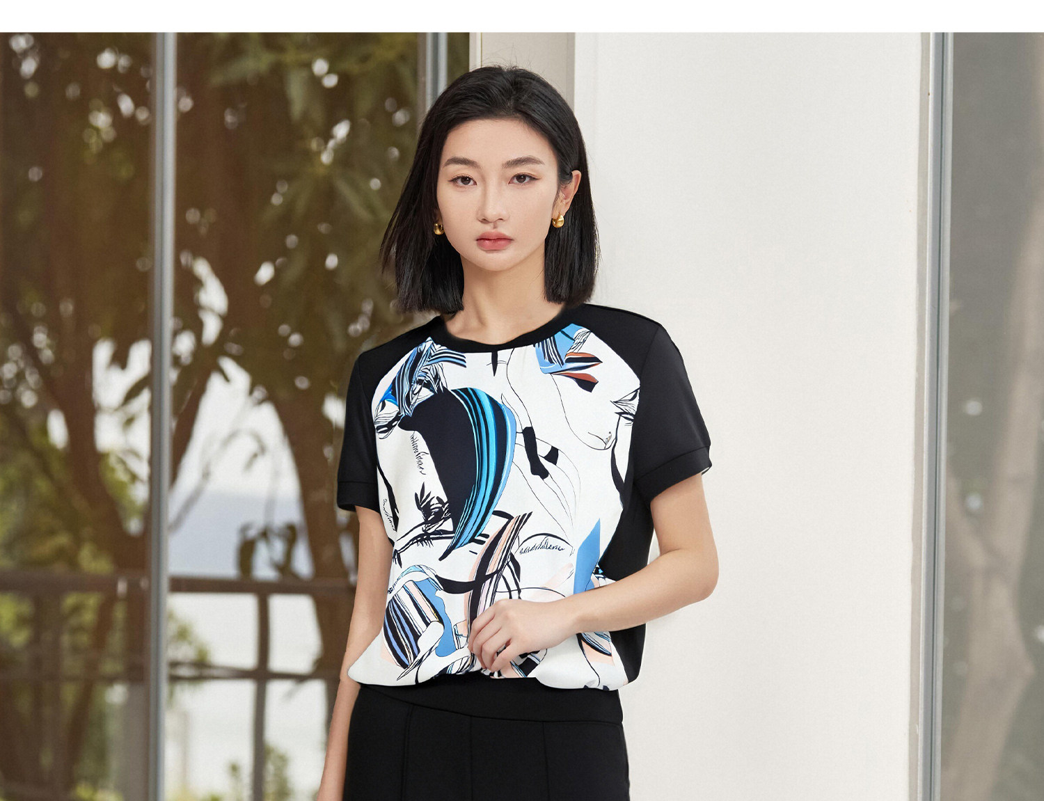 米思阳2026夏季新款小众艺术定制印花拼接T恤显瘦微喇休闲裤套装5M25BG3663