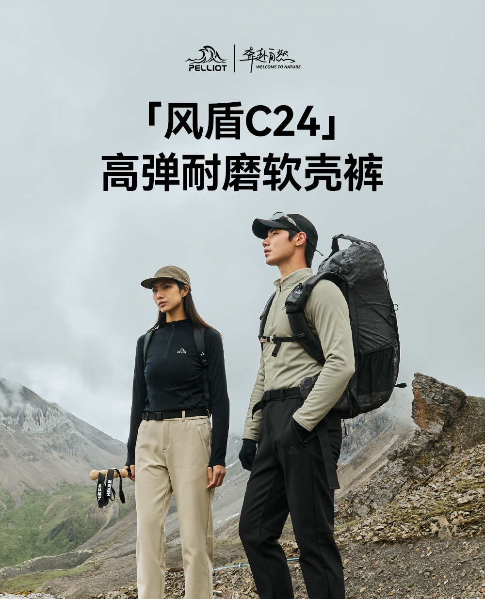 【风盾C24】伯希和软壳裤女加绒保暖户外运动长裤防风耐磨登山裤