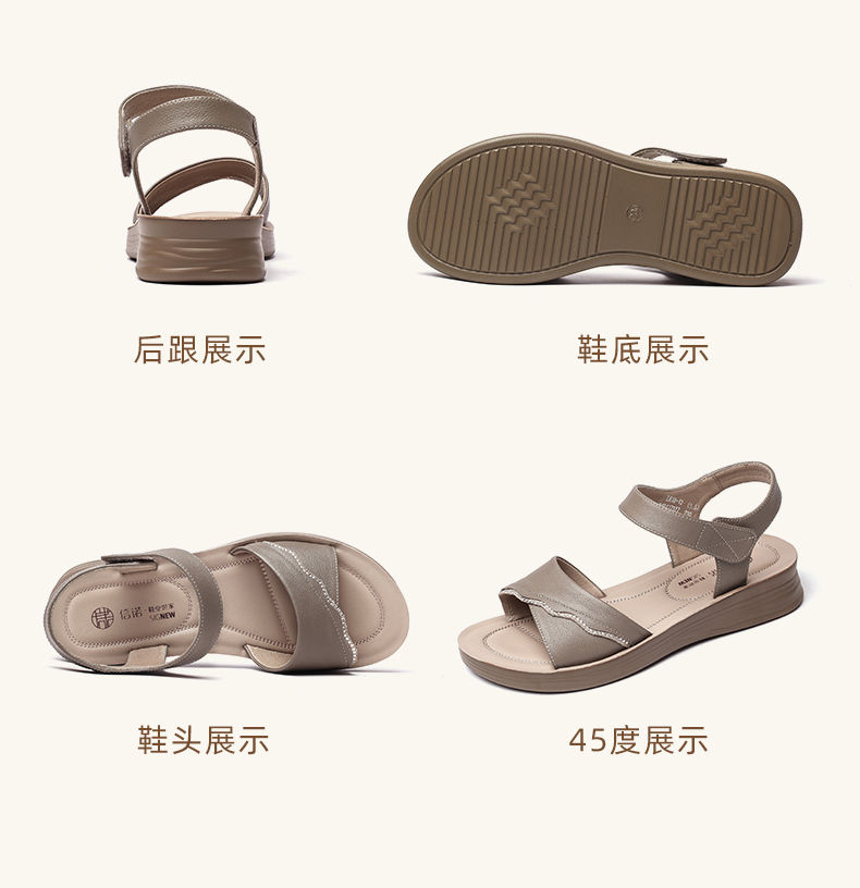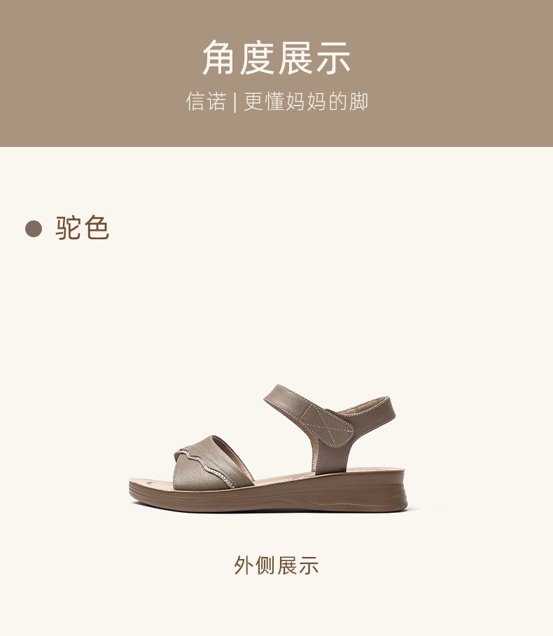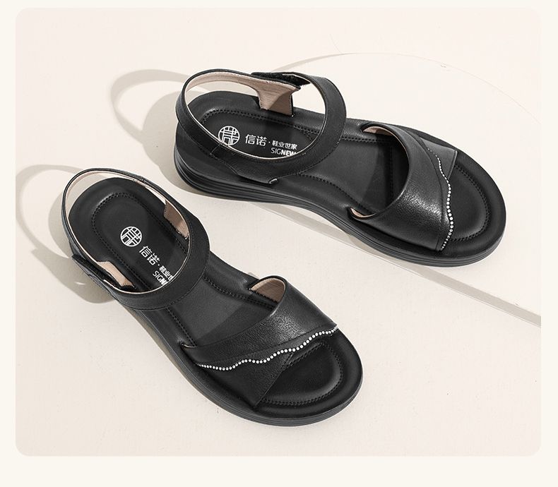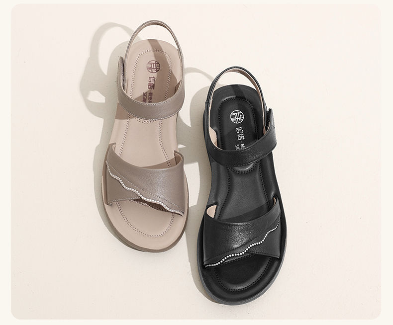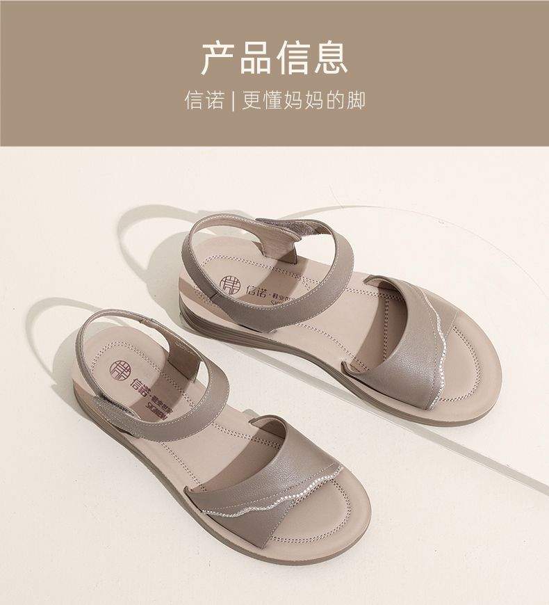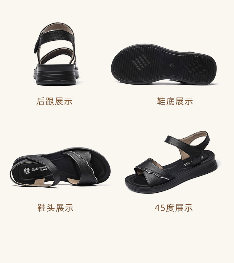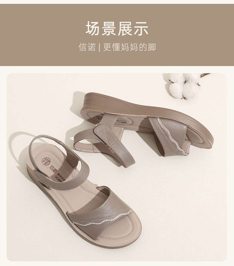 信诺 真皮舒适女鞋 2024新款夏季软底防滑魔术贴中老年妈妈鞋凉鞋L618-13