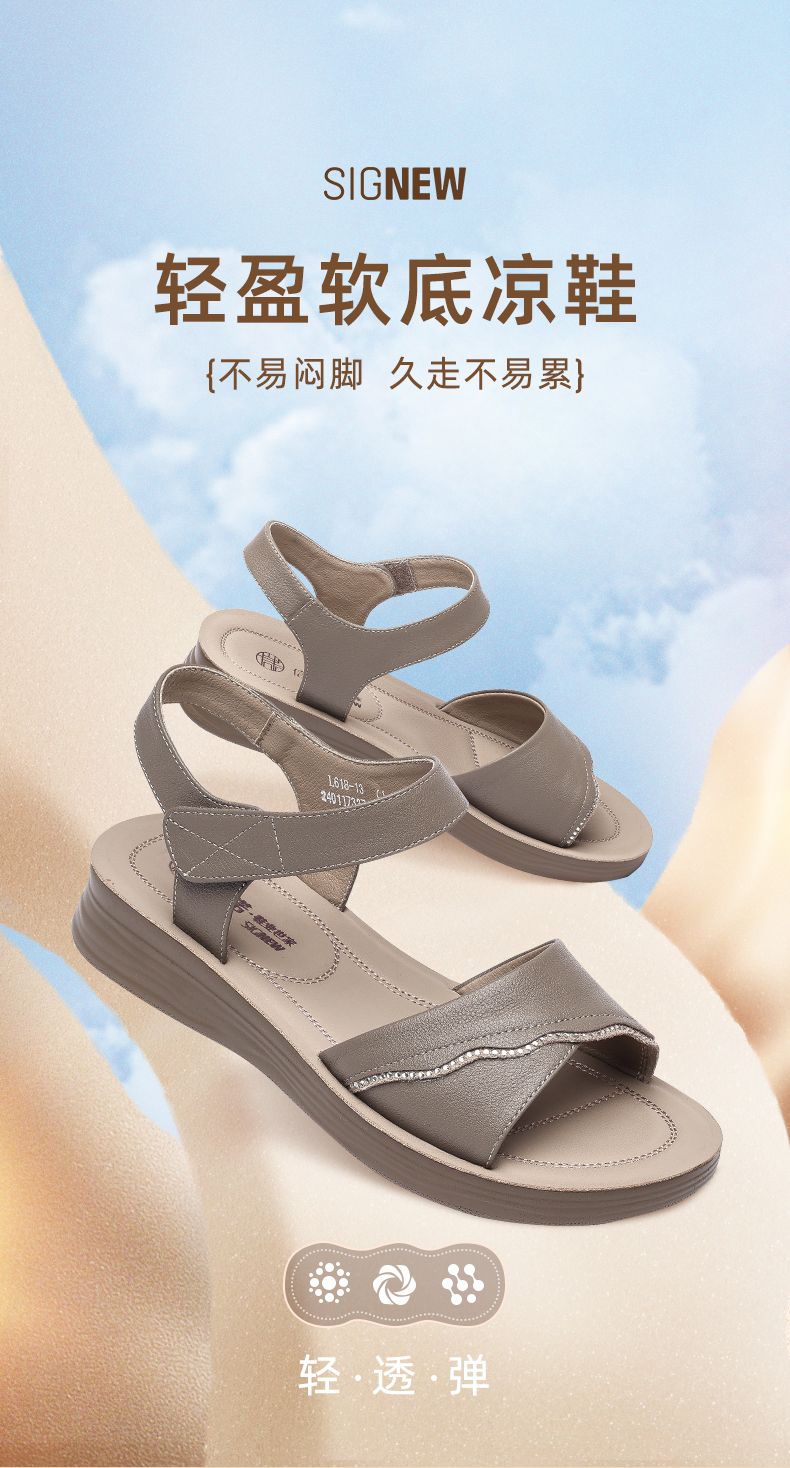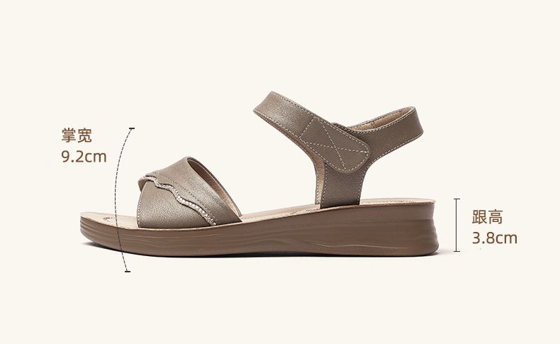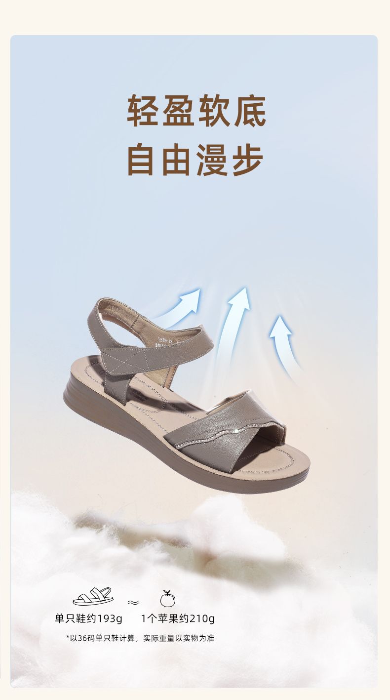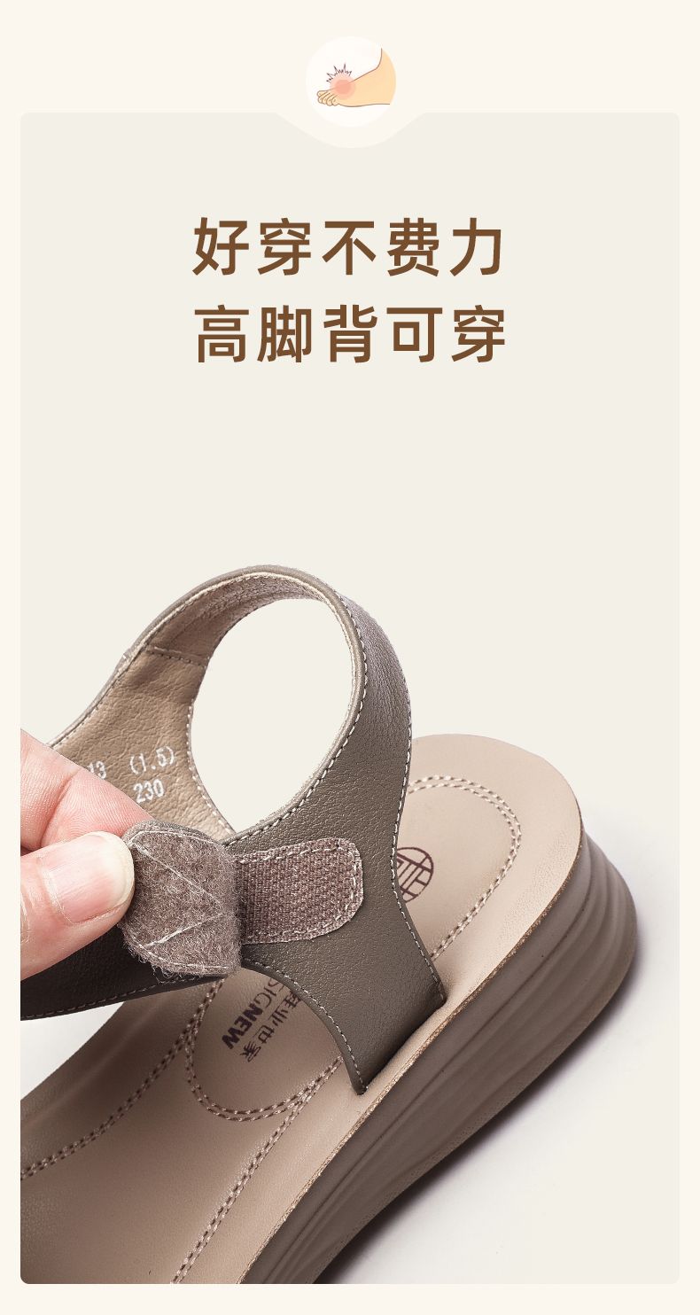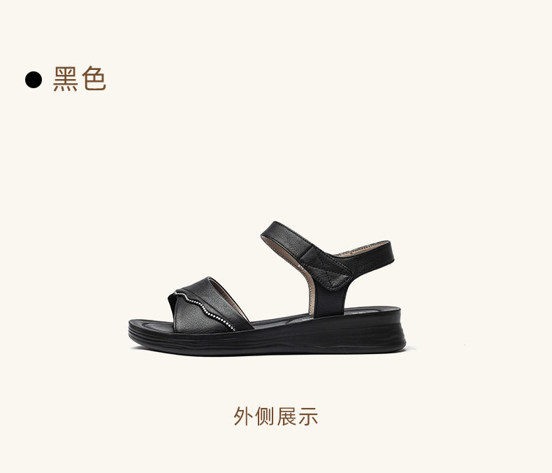 信诺 真皮舒适女鞋 2024新款夏季软底防滑魔术贴中老年妈妈鞋凉鞋L618-13