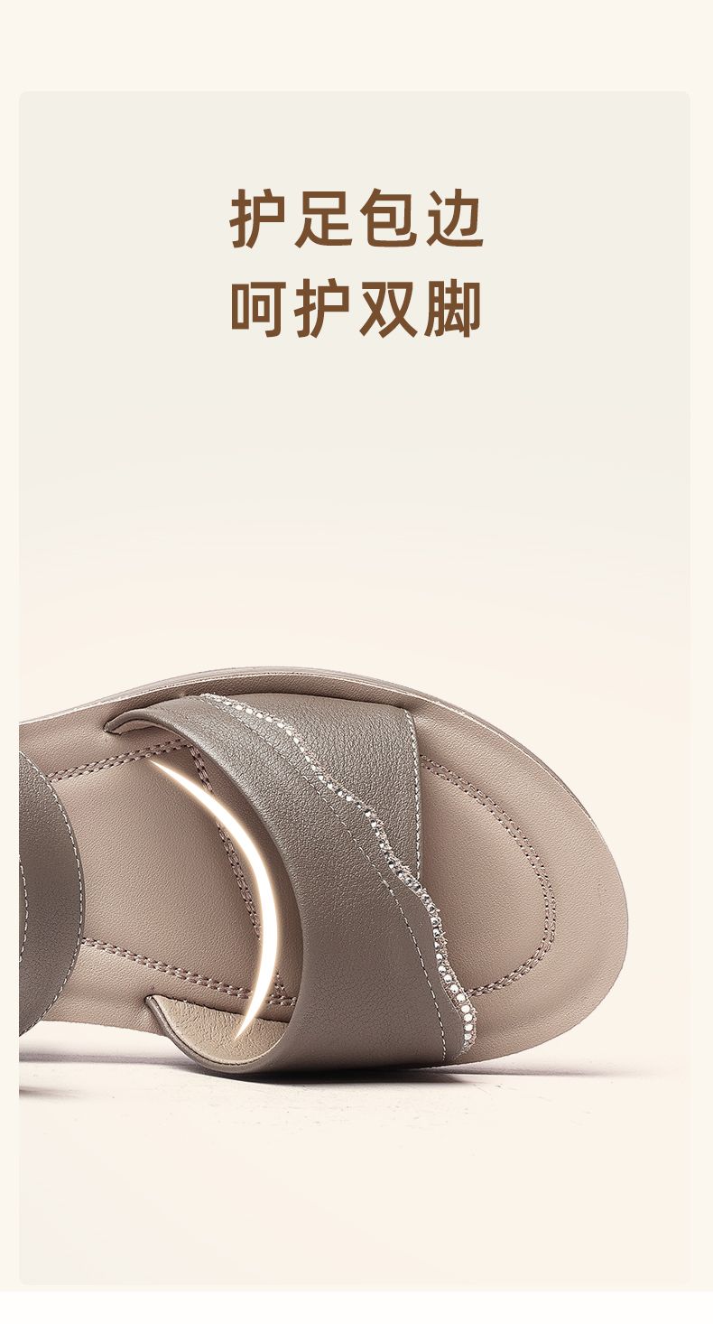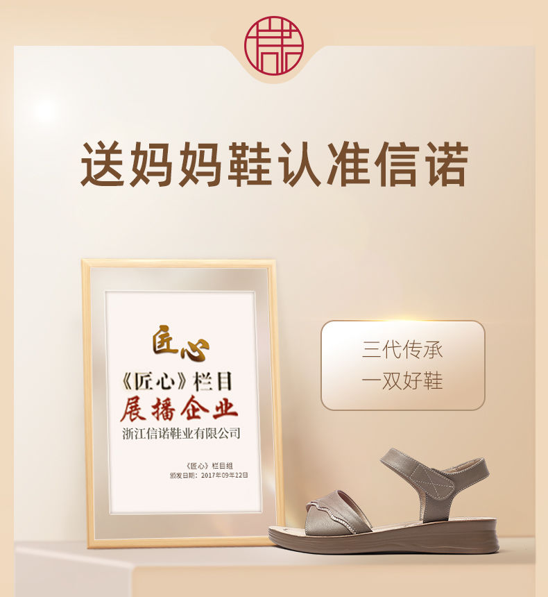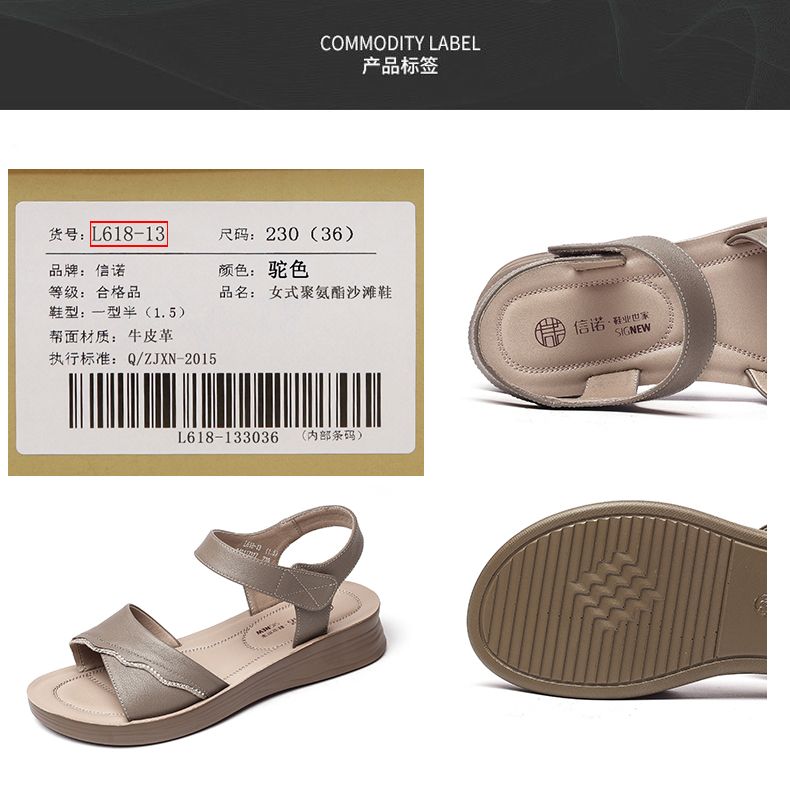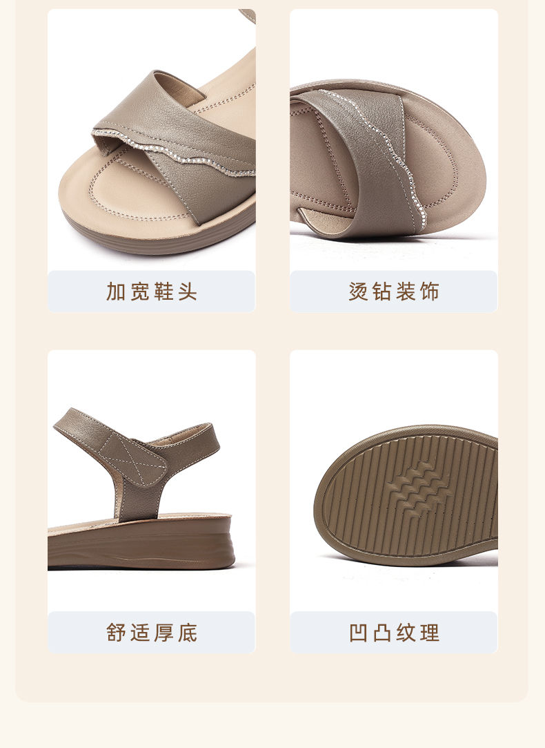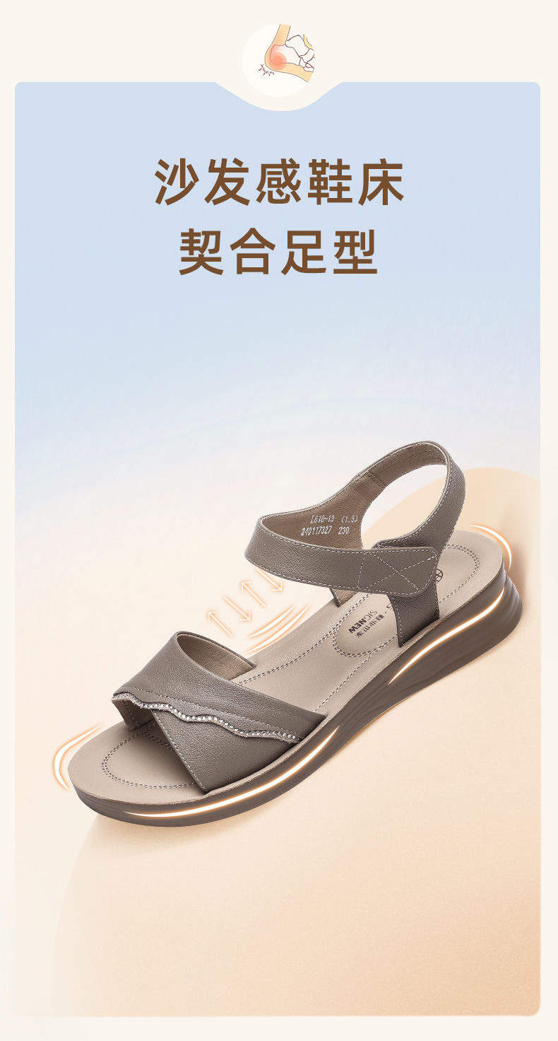 信诺 真皮舒适女鞋 2024新款夏季软底防滑魔术贴中老年妈妈鞋凉鞋L618-13
