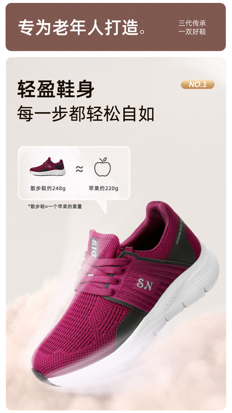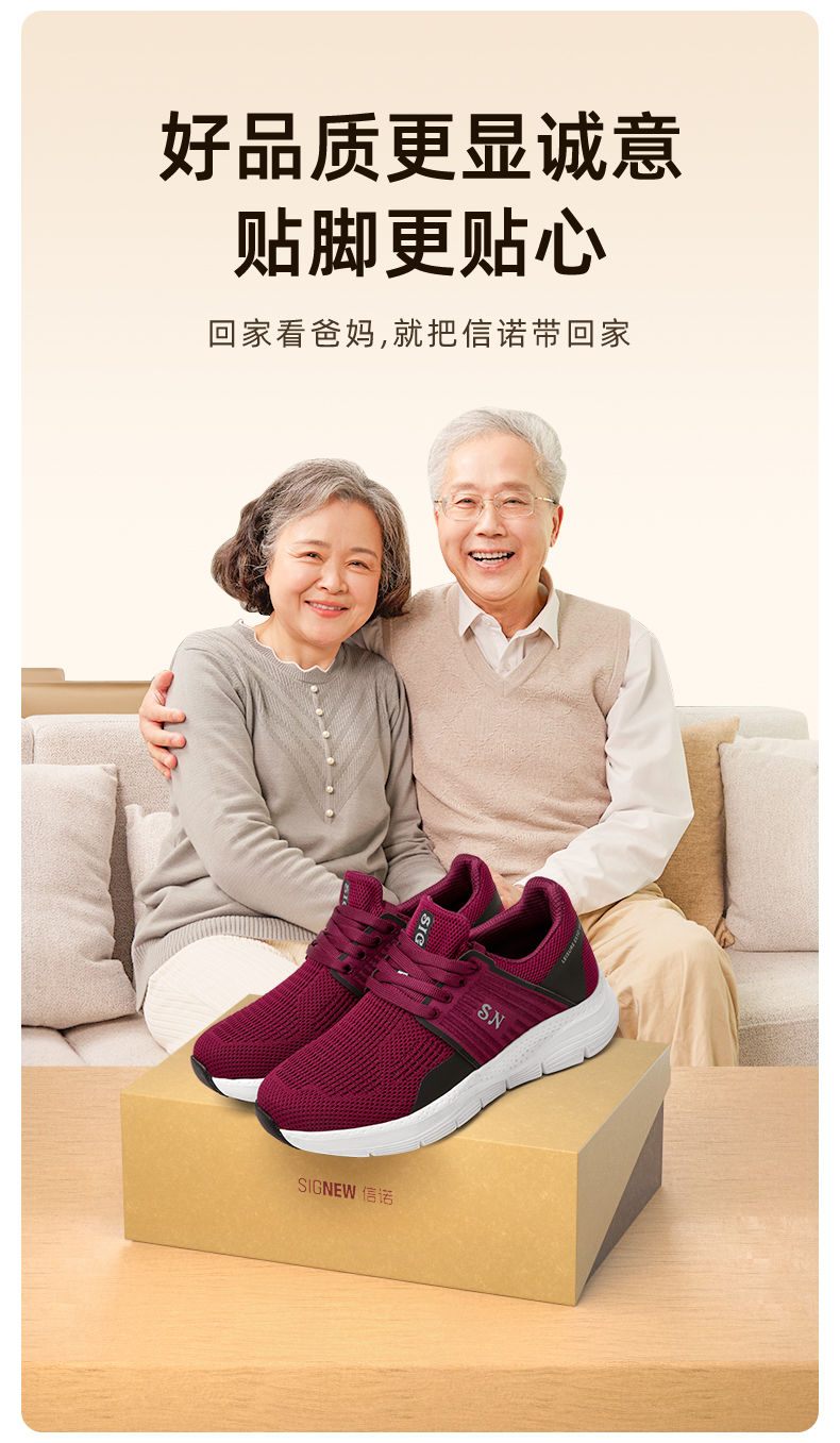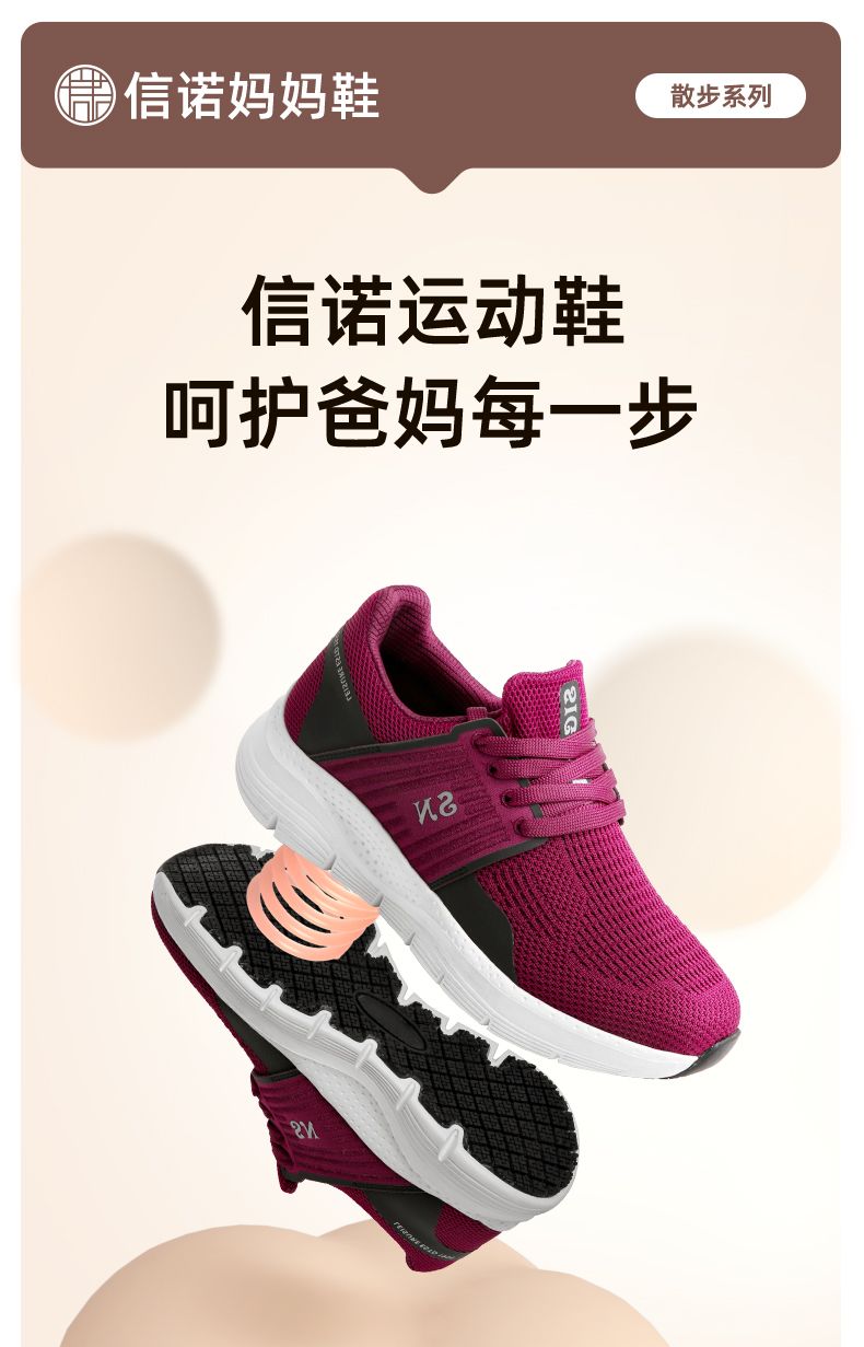 信诺网面透气妈妈运动鞋子女鞋秋季新款休闲中老年老人减震健步鞋23Q2817-X1