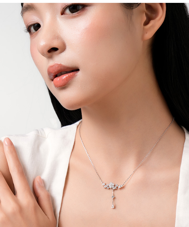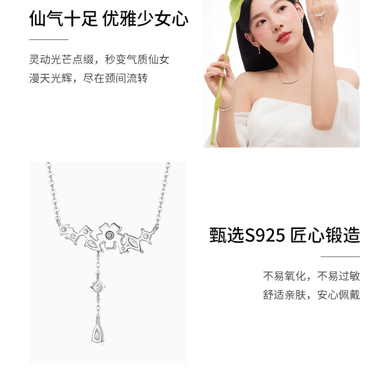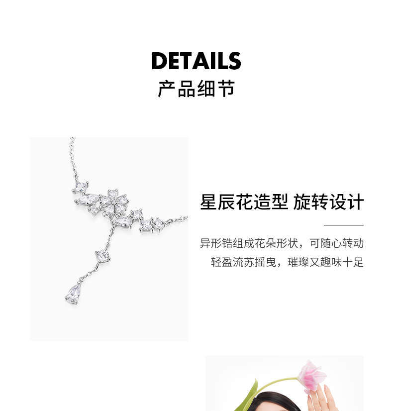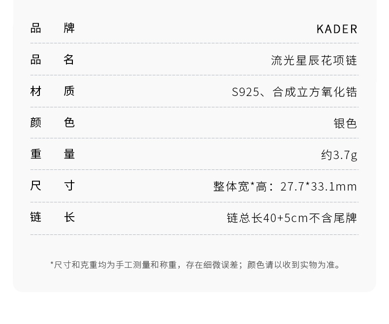 KADER卡蒂罗 流光星辰花项链女S925银轻奢小众设计锁骨链时尚生日礼物送女友送闺蜜