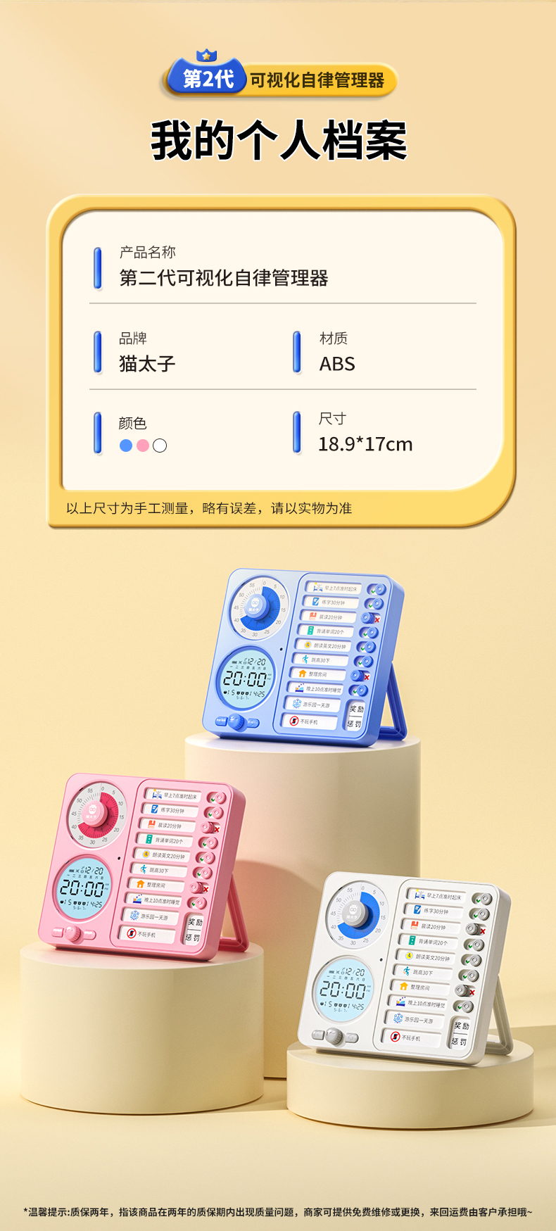 猫太子计时器小学生自律神器可视化时间管理器儿童学习专用定闹钟