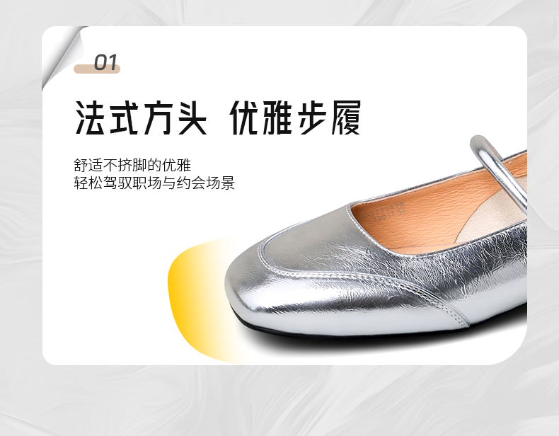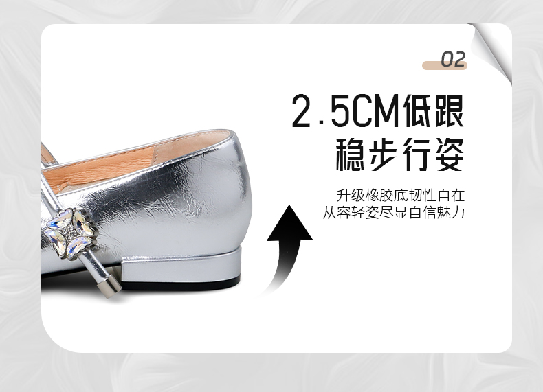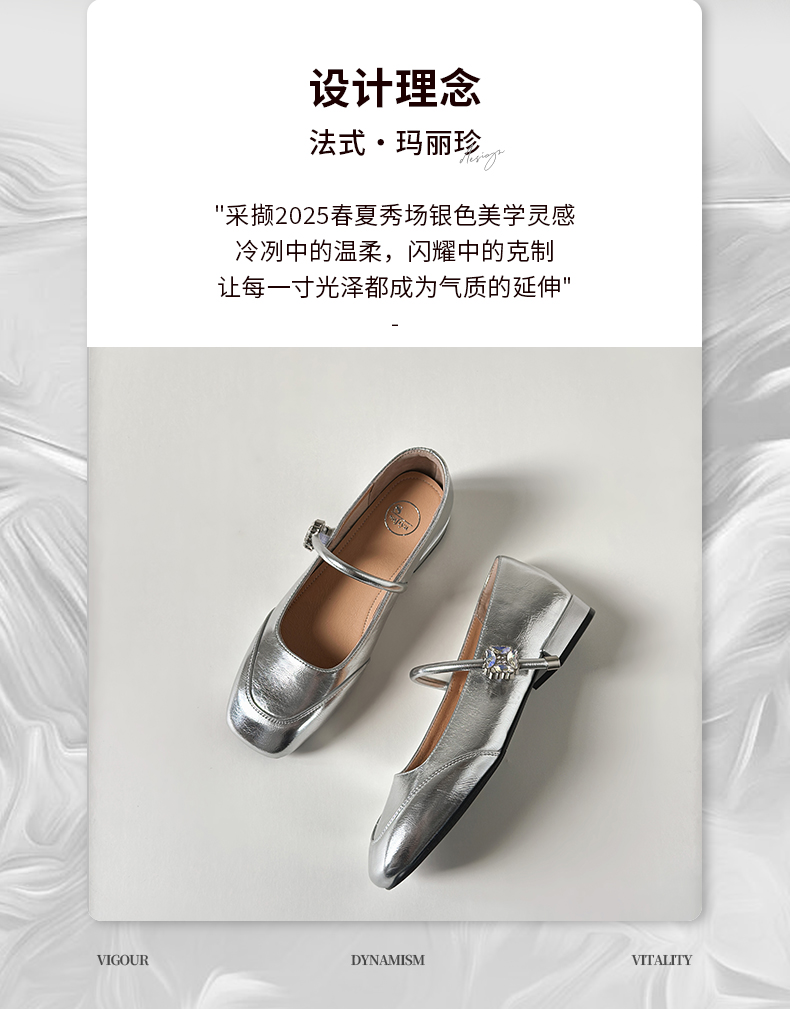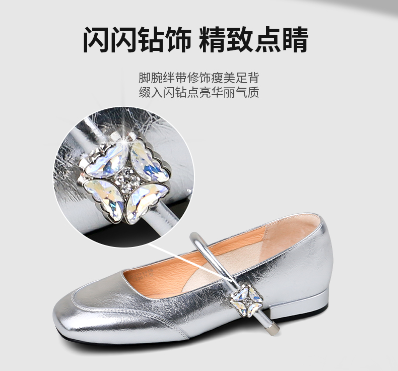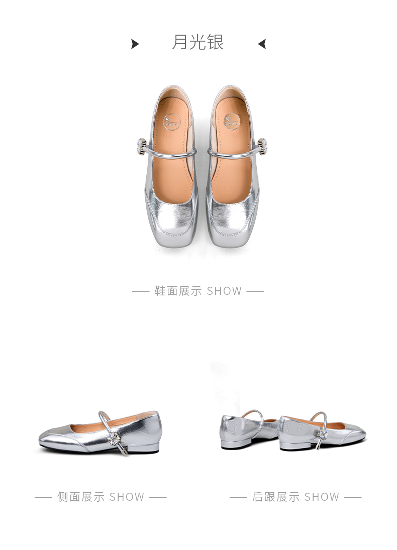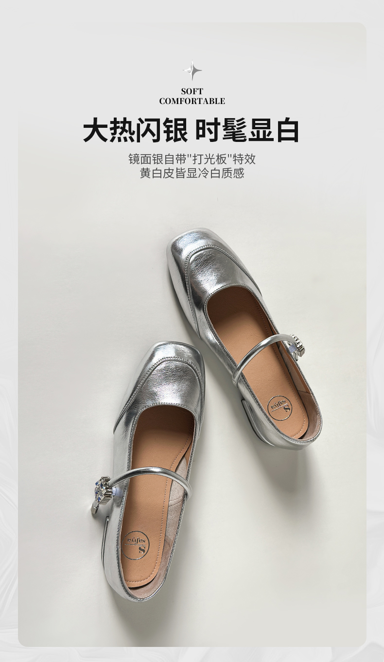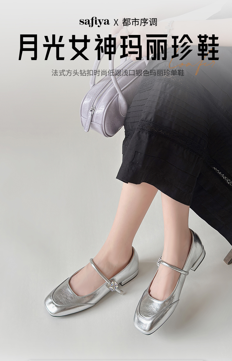Safiya/索菲娅2025法式方头钻扣时尚低跟浅口银色玛丽珍单鞋SFD3111416
