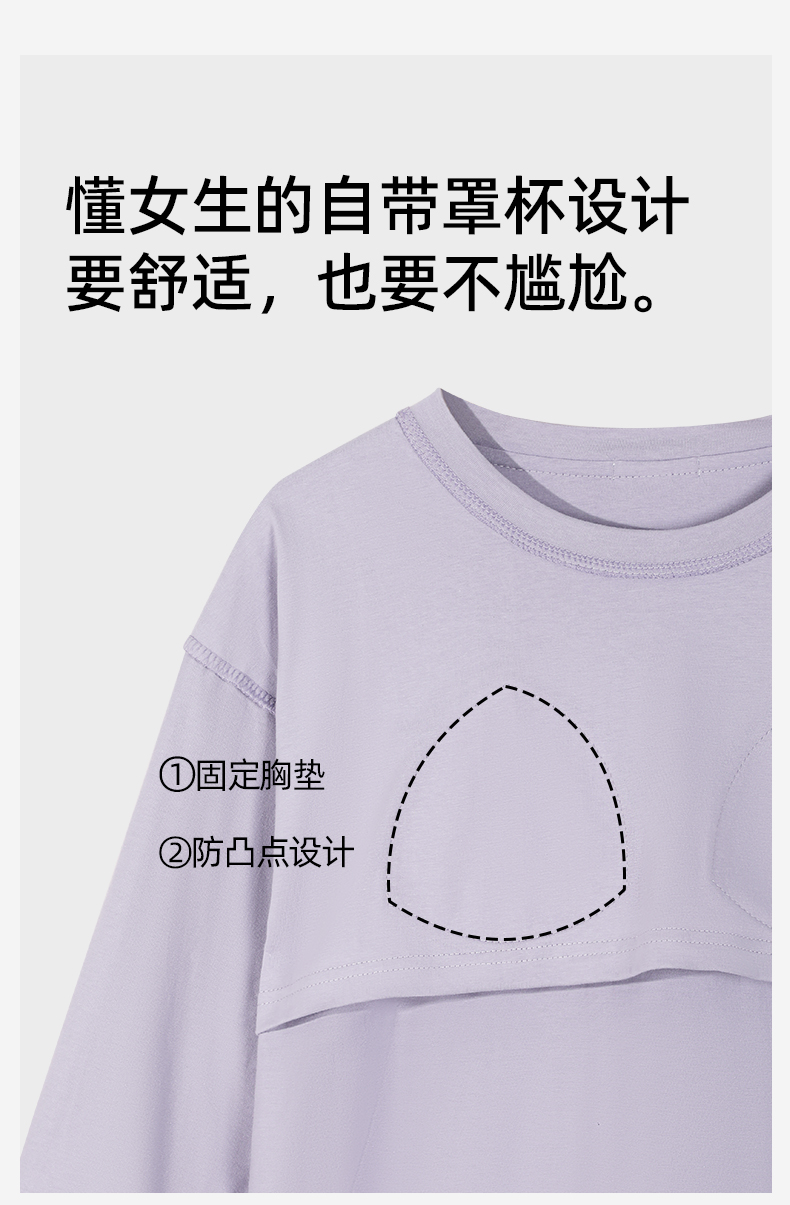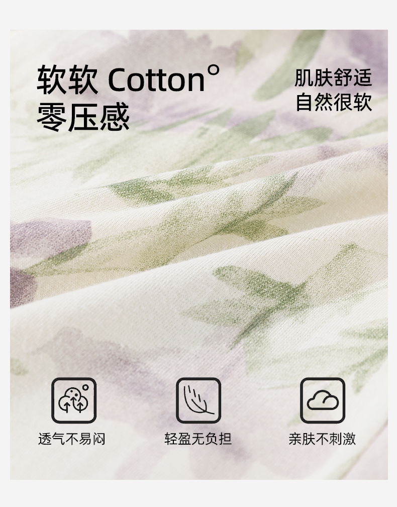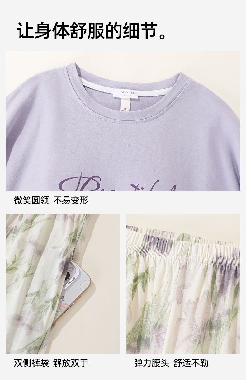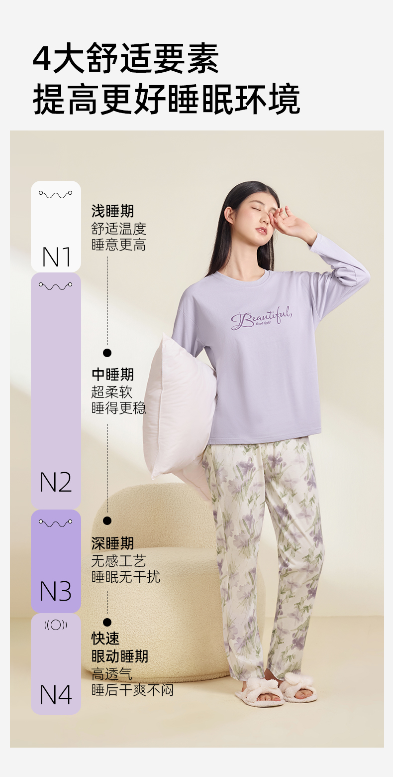 【带杯垫】熳洁儿 早秋新款纯棉家居服圆领套装撞色治愈紫植物花卉25763203