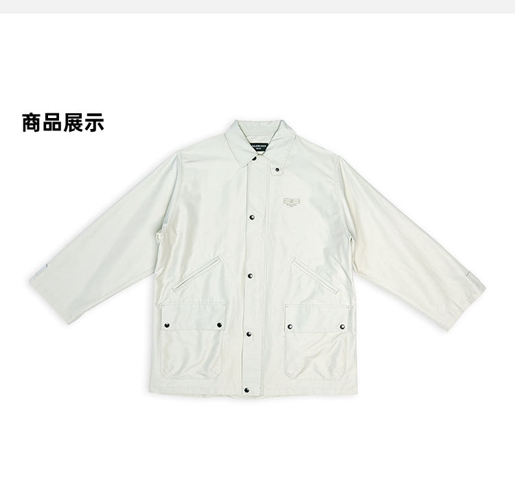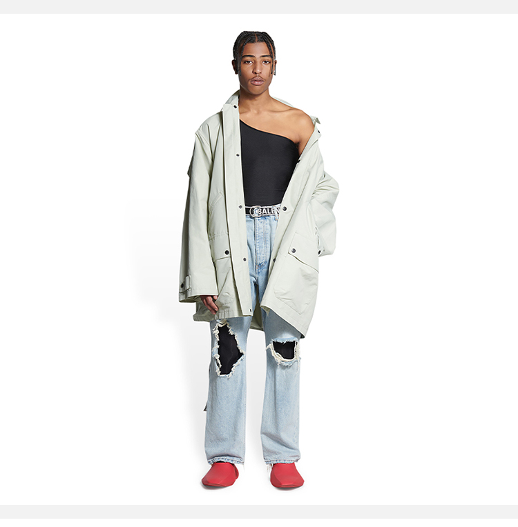 BALENCIAGA 巴黎世家 男士 夏季系列 BB PARIS ICON 标志刺绣长款派克大衣 浅绿色 698868 TMO17 9441
